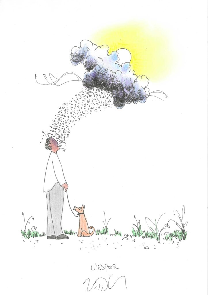 Drawing of the Day – 3713 – Dessin du Jour « Hope – L’espoir » Ink & colour on Paper – 8 x 12″ (21 x 30 cm) – Encre & couleurs sur Papier