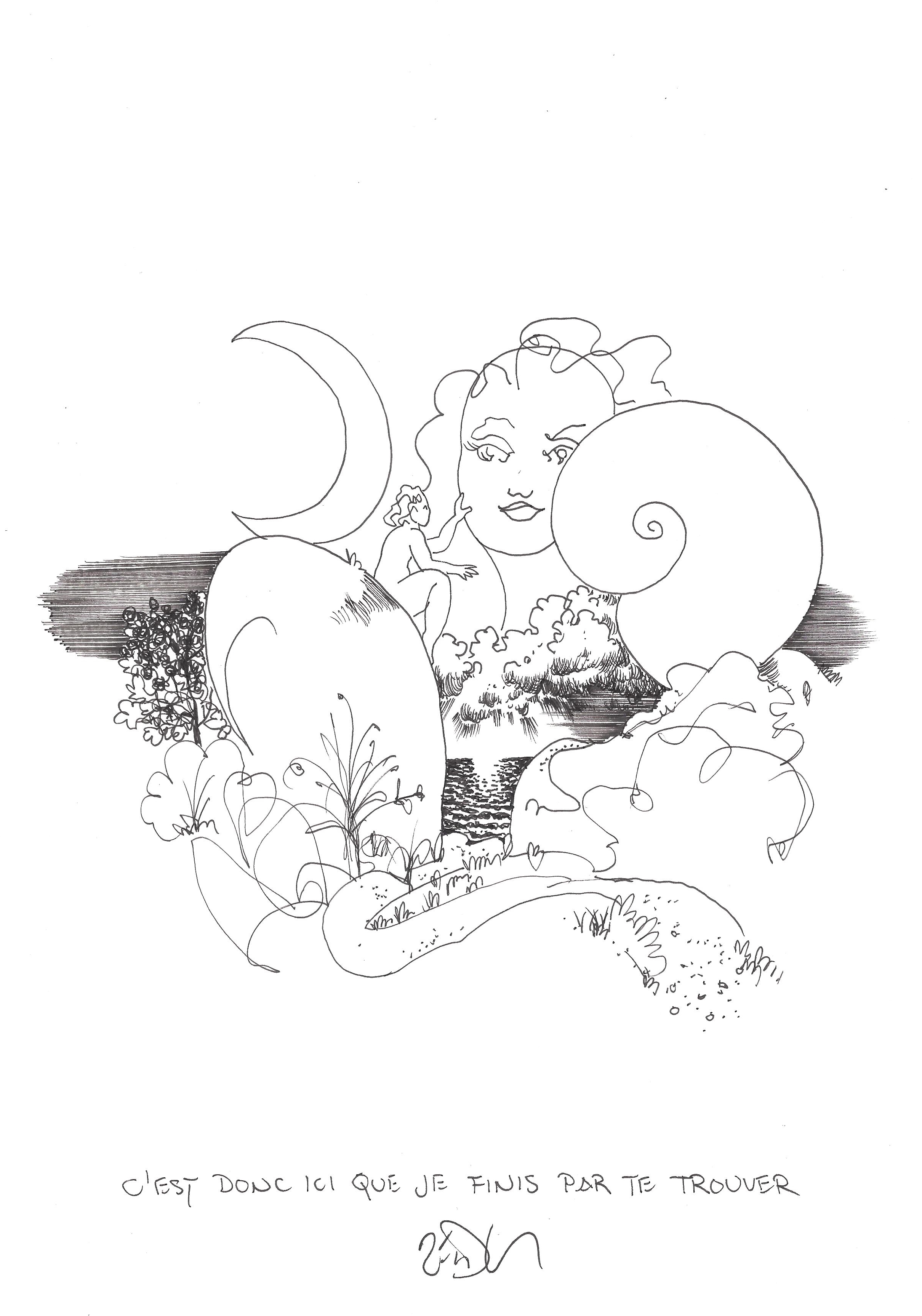 Drawing of the Day – 2734 – Dessin du jour « So this is where I find you – C’est donc ici que je finis par te trouver » Ink on Paper – 8 x 12″ (21 x 30 cm) – Encre sur Papier