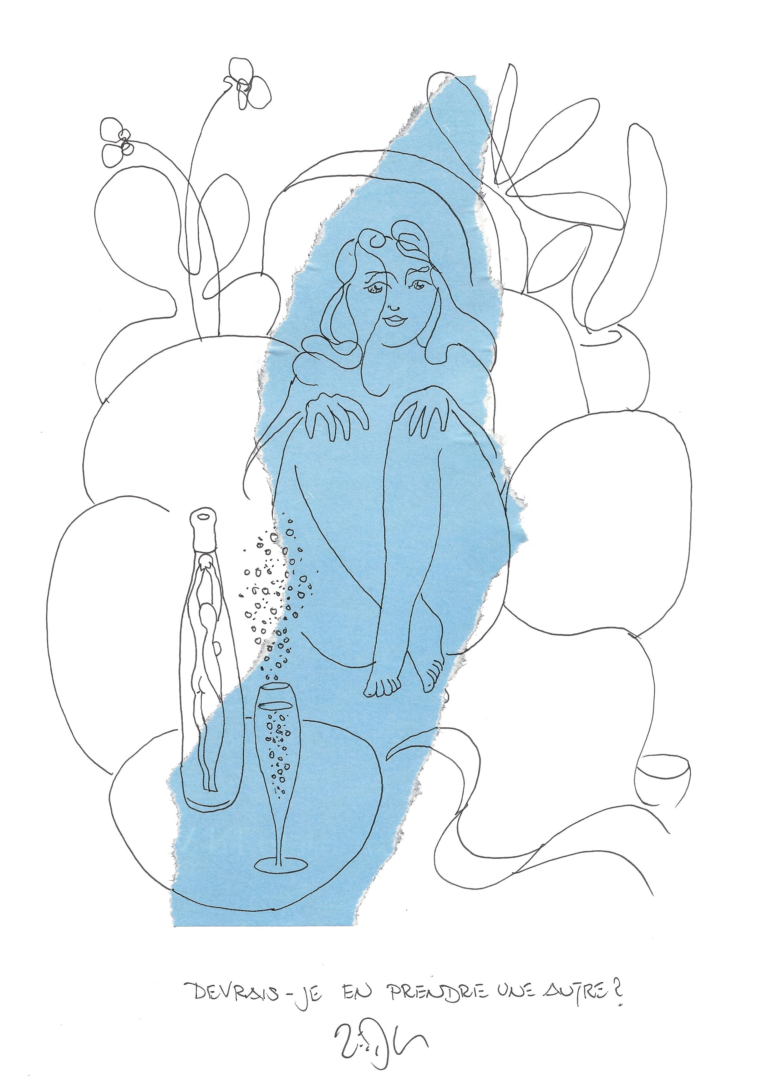 Drawing of the Day – 2680 – Dessin du jour « Should I have another ? – Devrais-je en prendre une autre ? » Mixed Media on Paper – 8 x 12″ (21 x 30 cm) – Technique mixte sur Papier