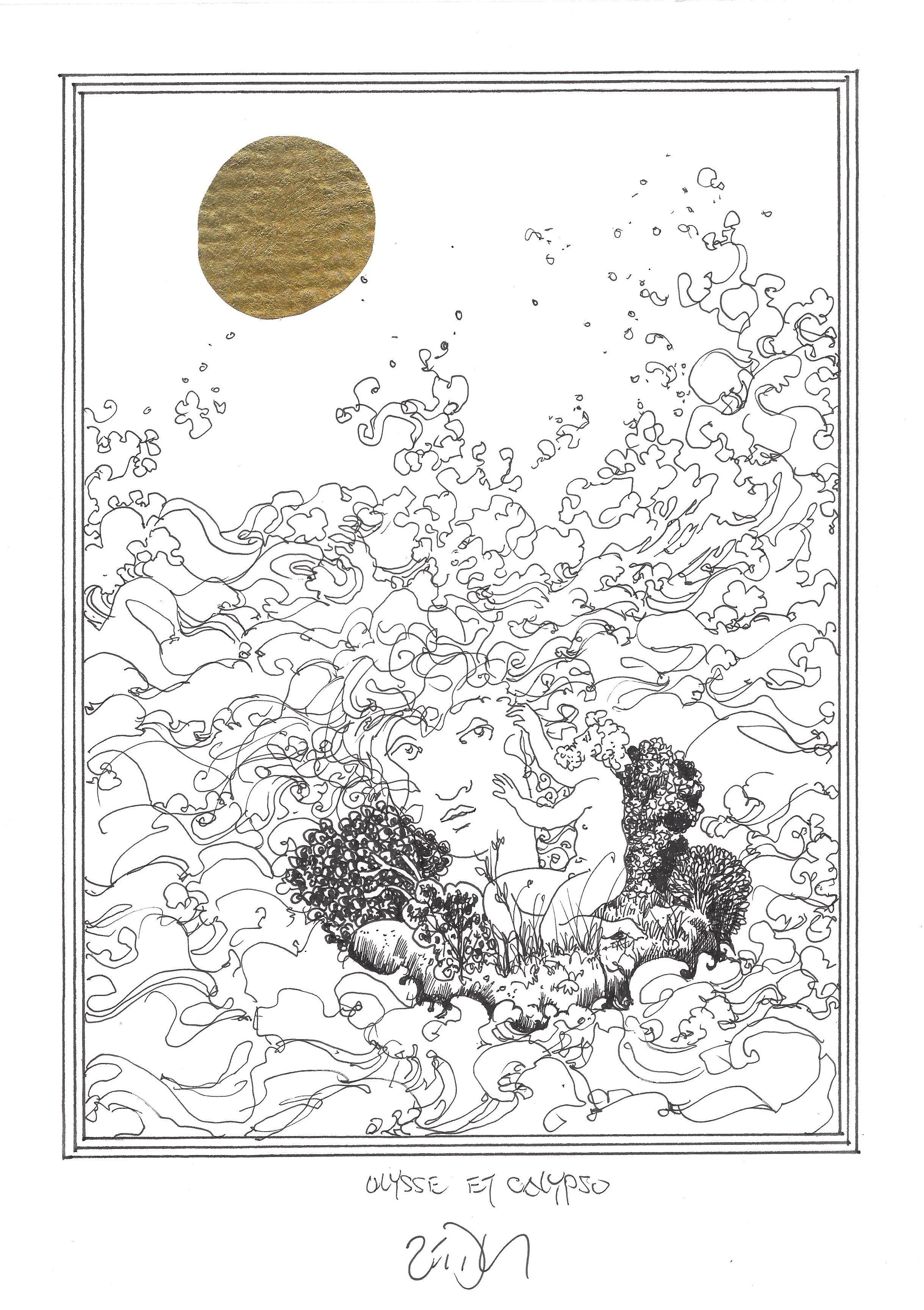 Drawing of the Day – 2686 – Dessin du jour « Ulysses and Calypso – Ulysse et Calypso » Mixed Media on Paper – 8 x 12″ (21 x 30 cm) – Technique mixte sur Papier
