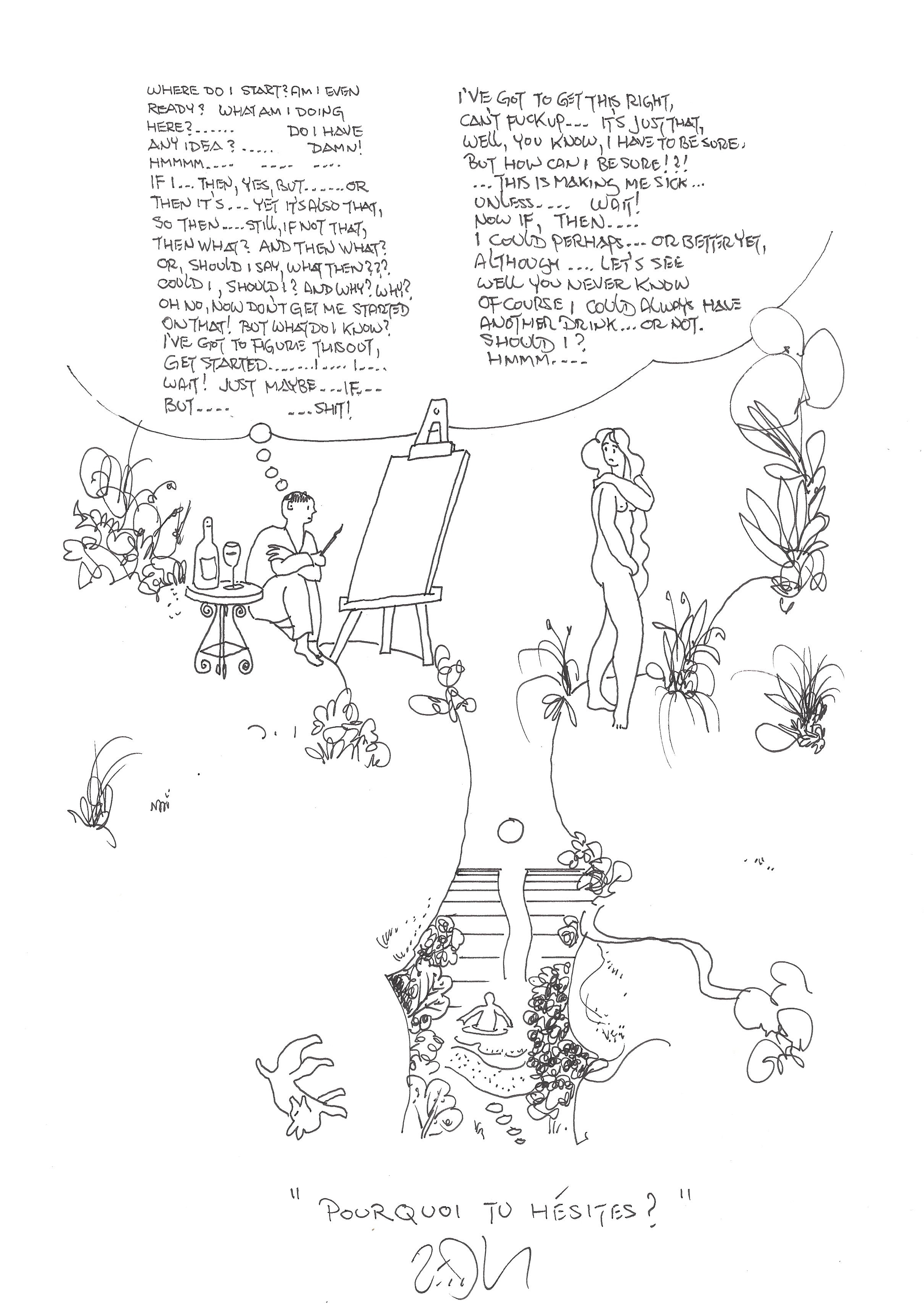 Drawing of the Day – 2660 – Dessin du jour « Why do you hesitate ? – Pourquoi tu hésites ? » Ink on Paper – 8 x 12″ (21 x 30 cm) – Encre sur Papier