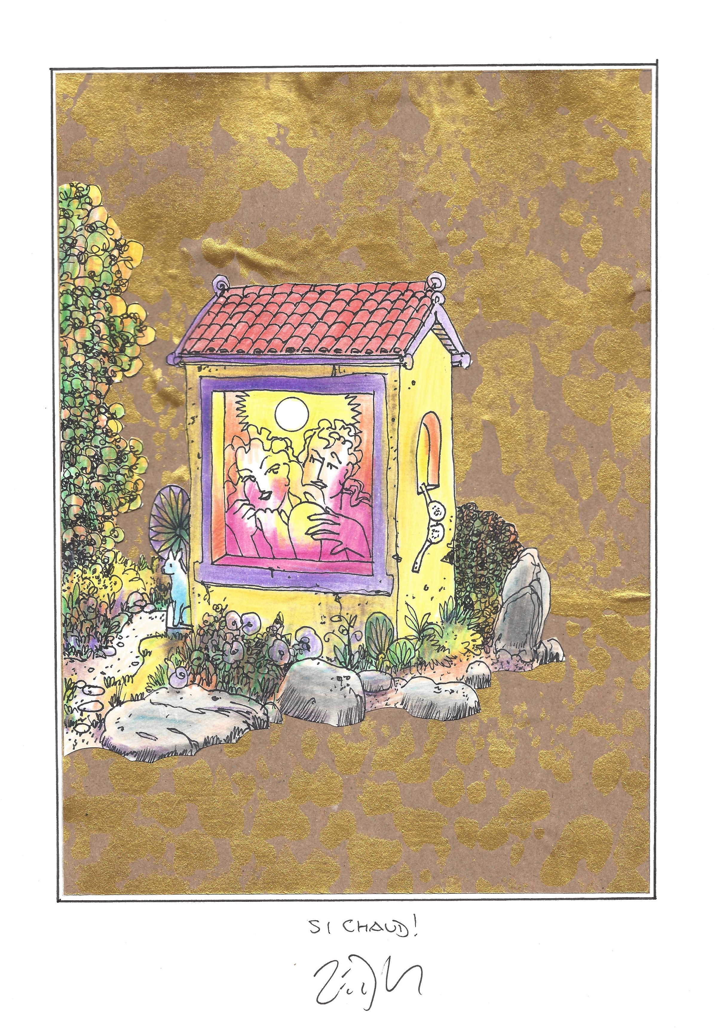 Drawing of the Day – 2663 – Dessin du jour « So hot ! – Si chaud ! » Mixed Media on Paper – 8 x 12″ (21 x 30 cm) – Technique mixte sur Papier