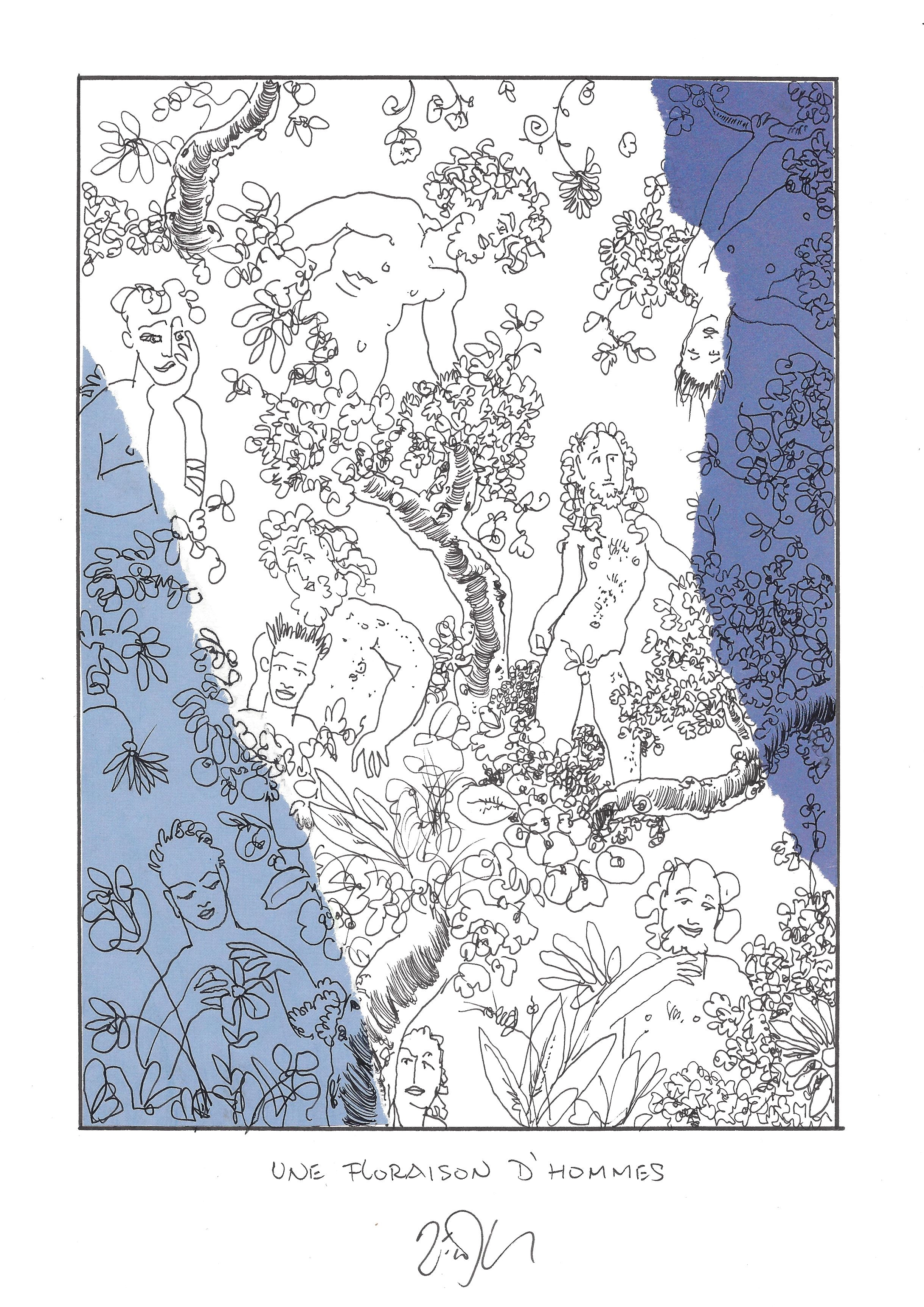 Drawing of the Day – 2664 – Dessin du jour « A flowering of men – Une floraison d’hommes » Mixed Media on Paper – 8 x 12″ (21 x 30 cm) – Technique mixte sur Papier