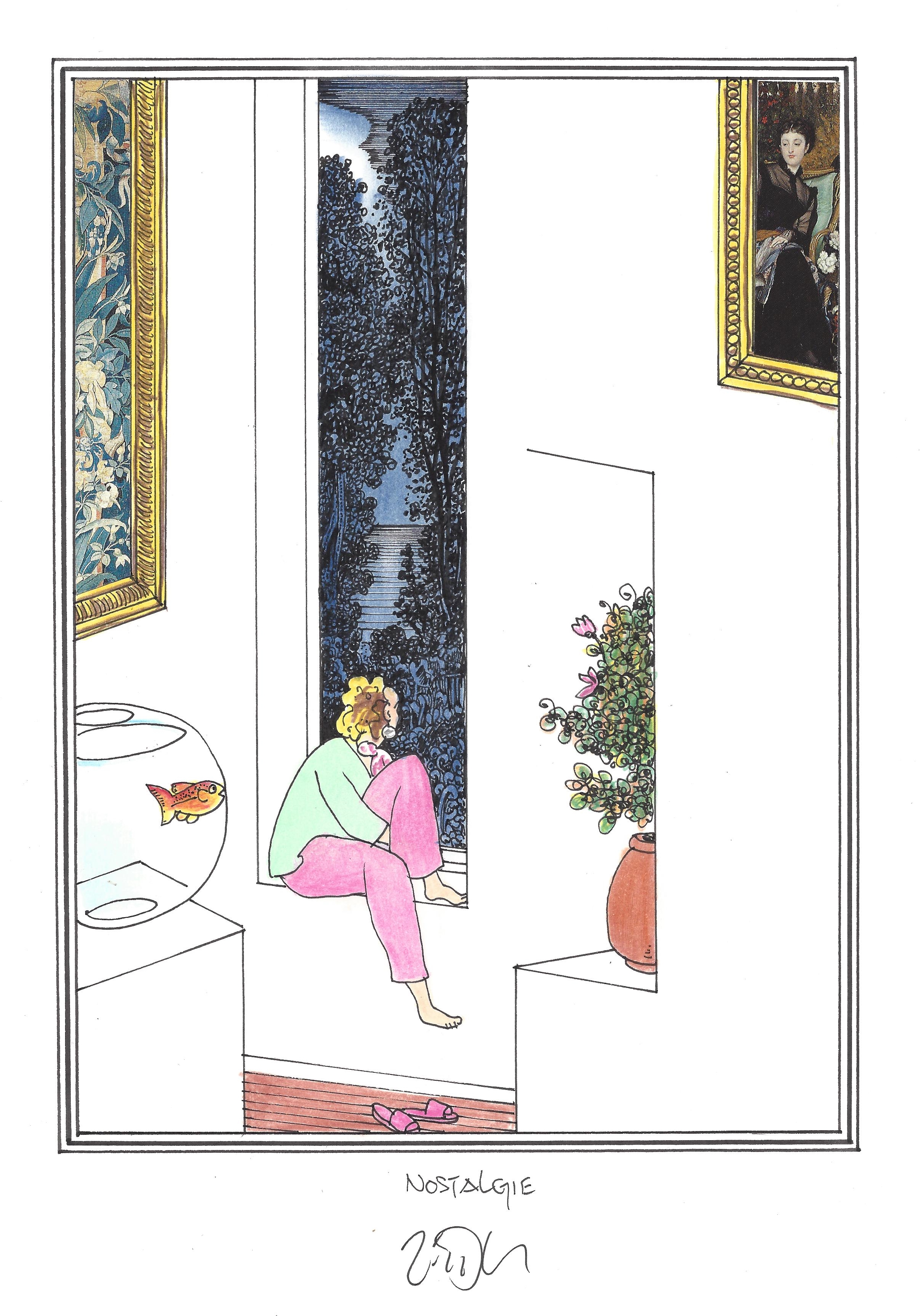 Drawing of the Day – 2666 – Dessin du jour « Yearning – Nostalgie » Mixed Media on Paper – 8 x 12″ (21 x 30 cm) – Technique mixte sur Papier