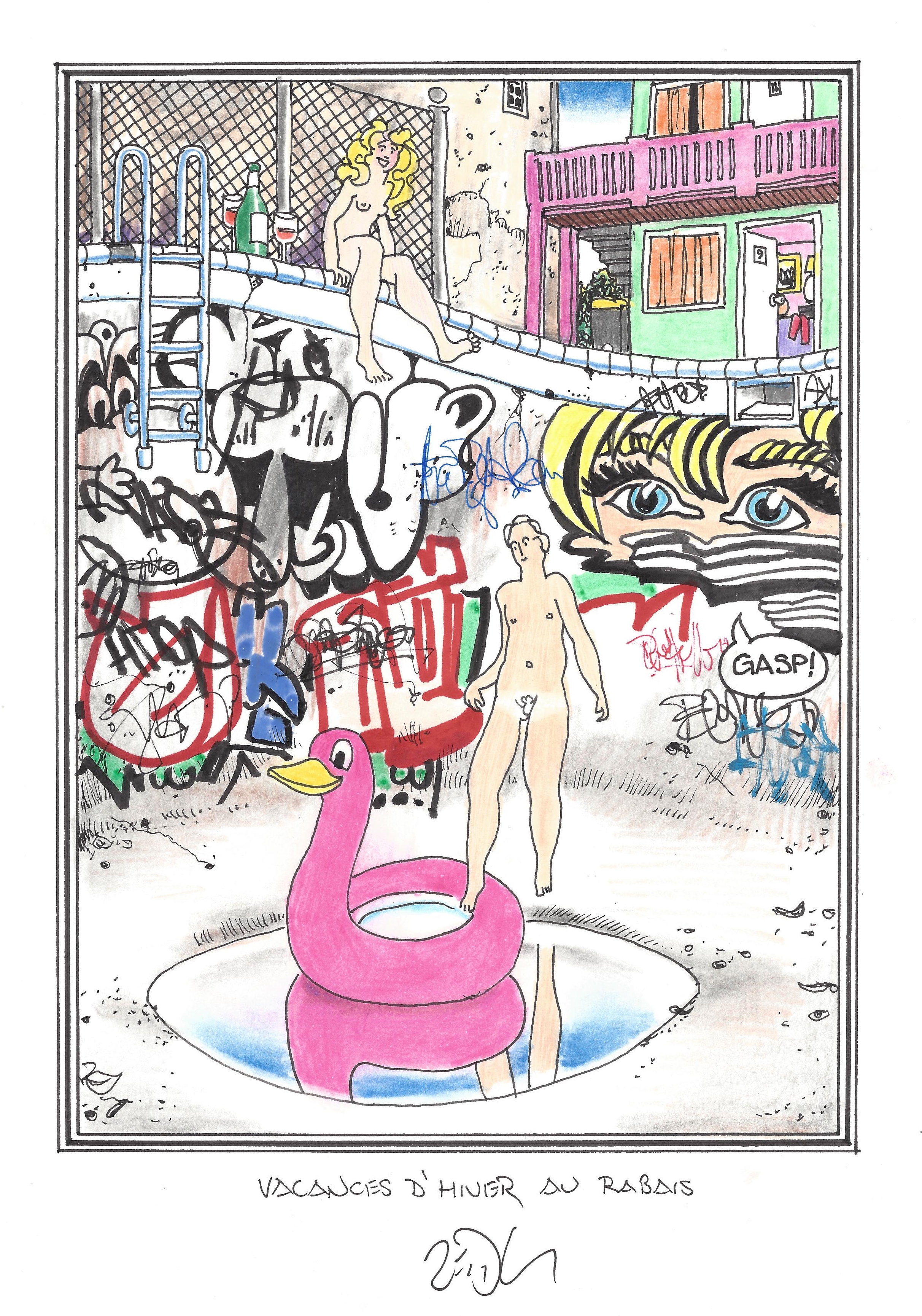 Drawing of the Day – 2644 – Dessin du jour « Cheap winter vacation – Vacances d’hiver au rabais » Ink & colour on Paper – 8 x 12″ (21 x 30 cm) – Encre & couleurs sur Papier