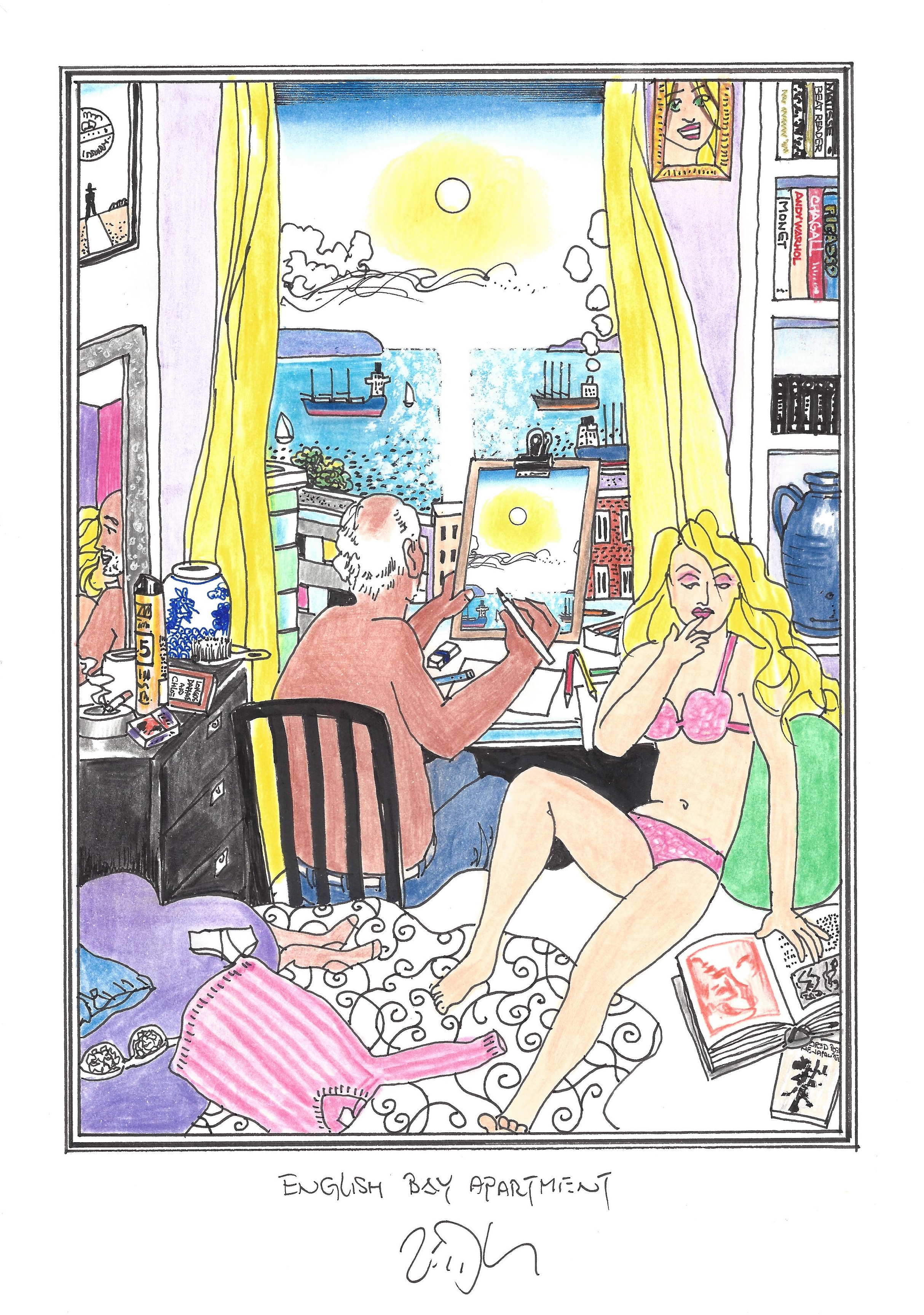 Drawing of the Day – 2648 – Dessin du jour « English Bay Apartment – Appartement sur English Bay » Ink & colour on Paper – 8 x 12″ (21 x 30 cm) – Encre & couleurs sur Papier