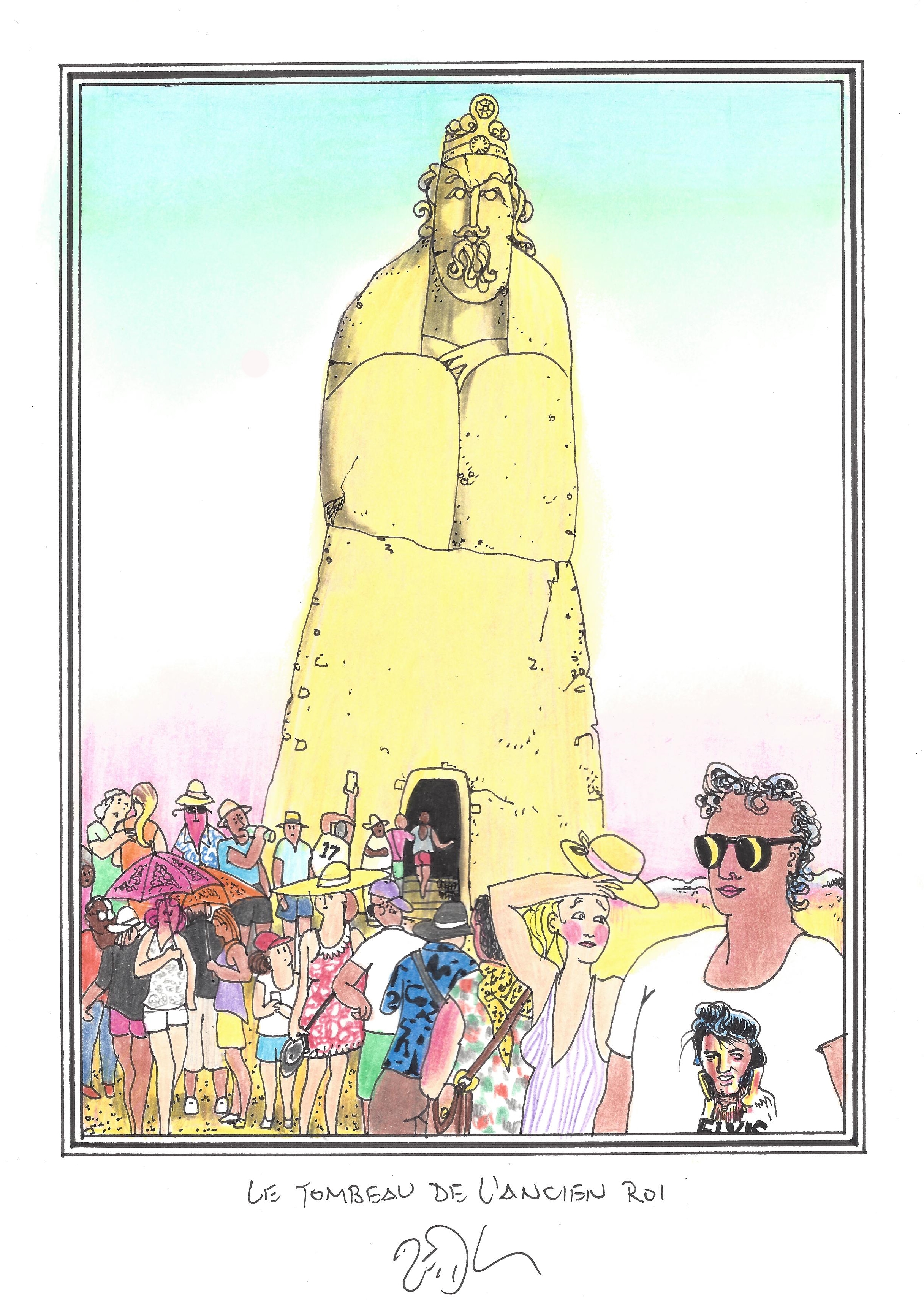 Drawing of the Day – 2635 – Dessin du jour « The tomb of the ancient king – Le tombeau de l’ancien roi » Ink & color on Paper – 8 x 12″ (21 x 30 cm) – Encre & couleurs sur Papier