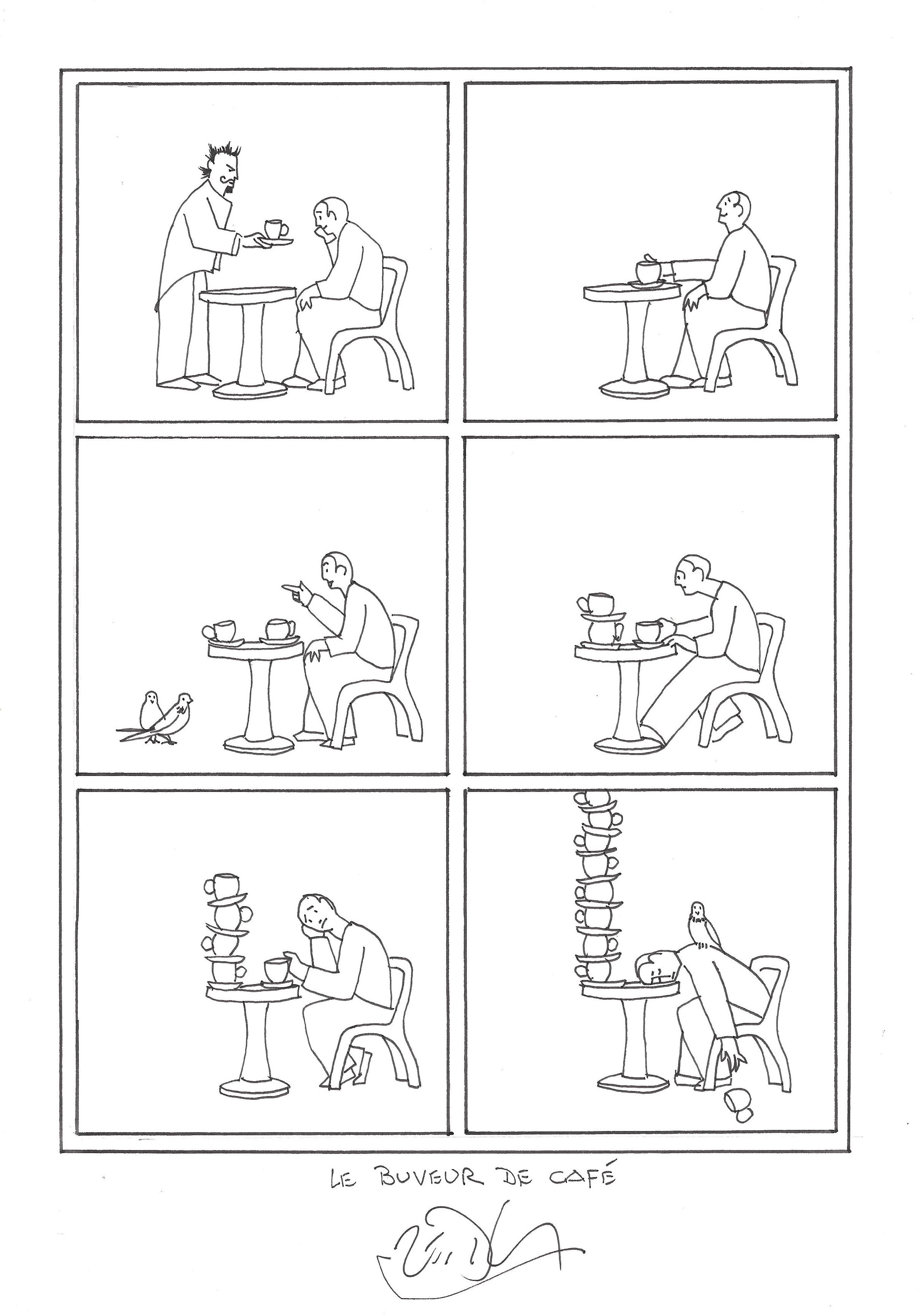 Drawing of the Day – 2638 – Dessin du jour « The coffee drinker – Le buveur de café » Ink on Paper – 8 x 12″ (21 x 30 cm) – Encre sur Papier