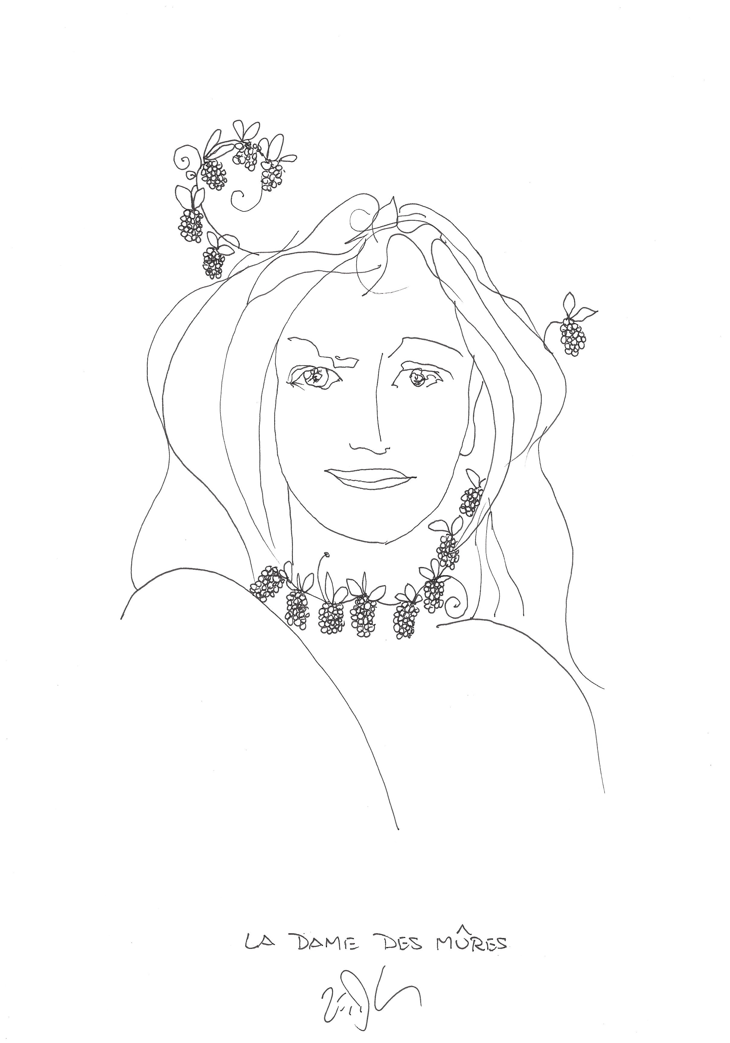 Drawing of the Day – 2621 – Dessin du jour « My lady of the blackberries – La dame des mûres » Ink on Paper – 8 x 12″ (21 x 30 cm) – Encre sur Papier