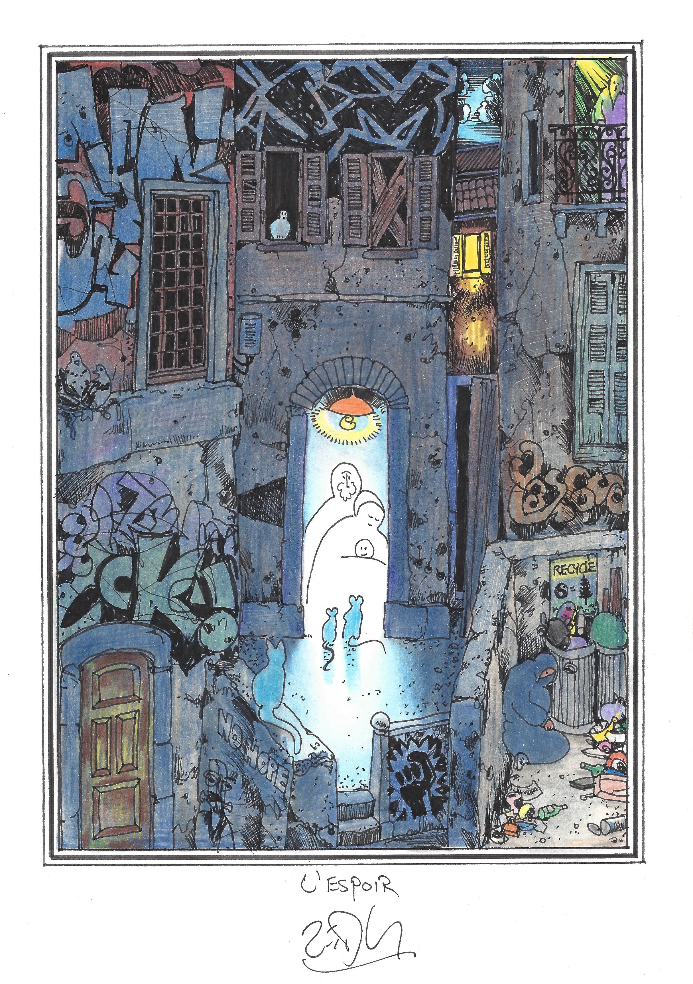 Drawing of the Day – 2627 – Dessin du jour « Hope – L’espoir » Ink & color on Paper – 8 x 12″ (21 x 30 cm) – Encre & couleurs sur Papier