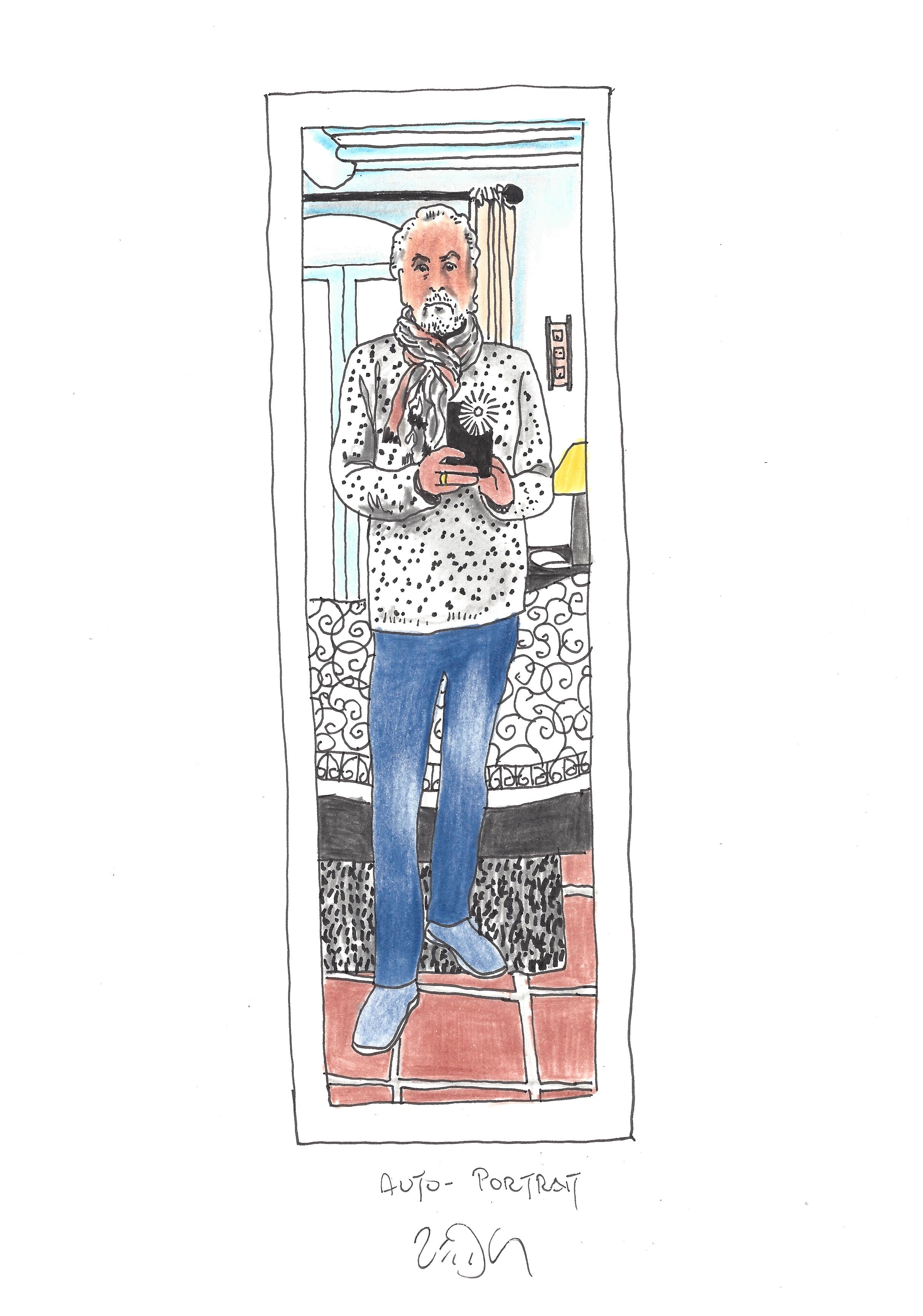 Drawing of the Day – 2490 – Dessin du jour « Self-portrait – Auto-portrait » Ink & color on Paper – 8 x 12″ (21 x 30 cm) – Encre & couleurs sur Papier