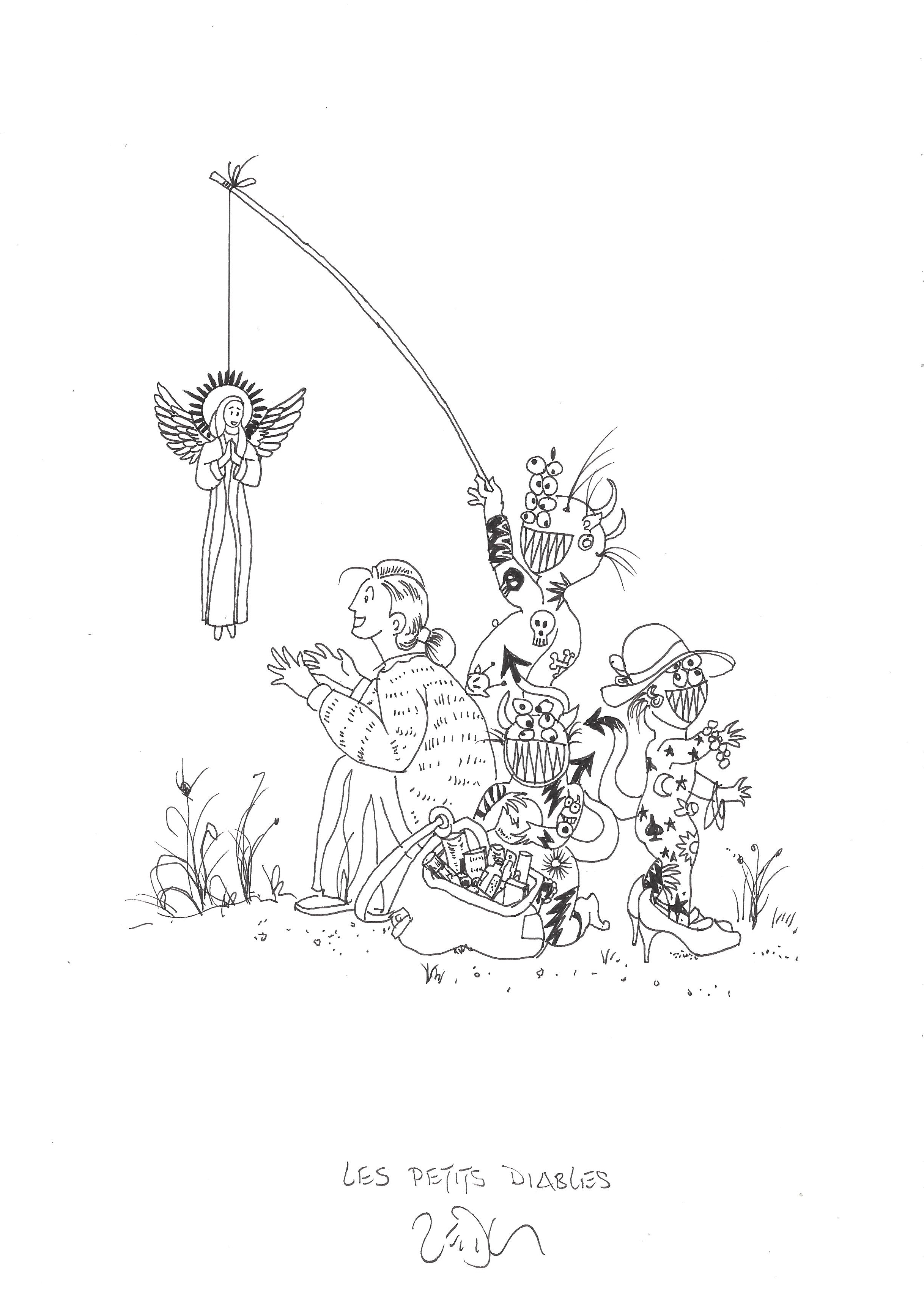 Drawing of the Day – 2488 – Dessin du jour « The little devils – Les petits diables » Ink on Paper – 8 x 12″ (21 x 30 cm) – Encre sur Papier