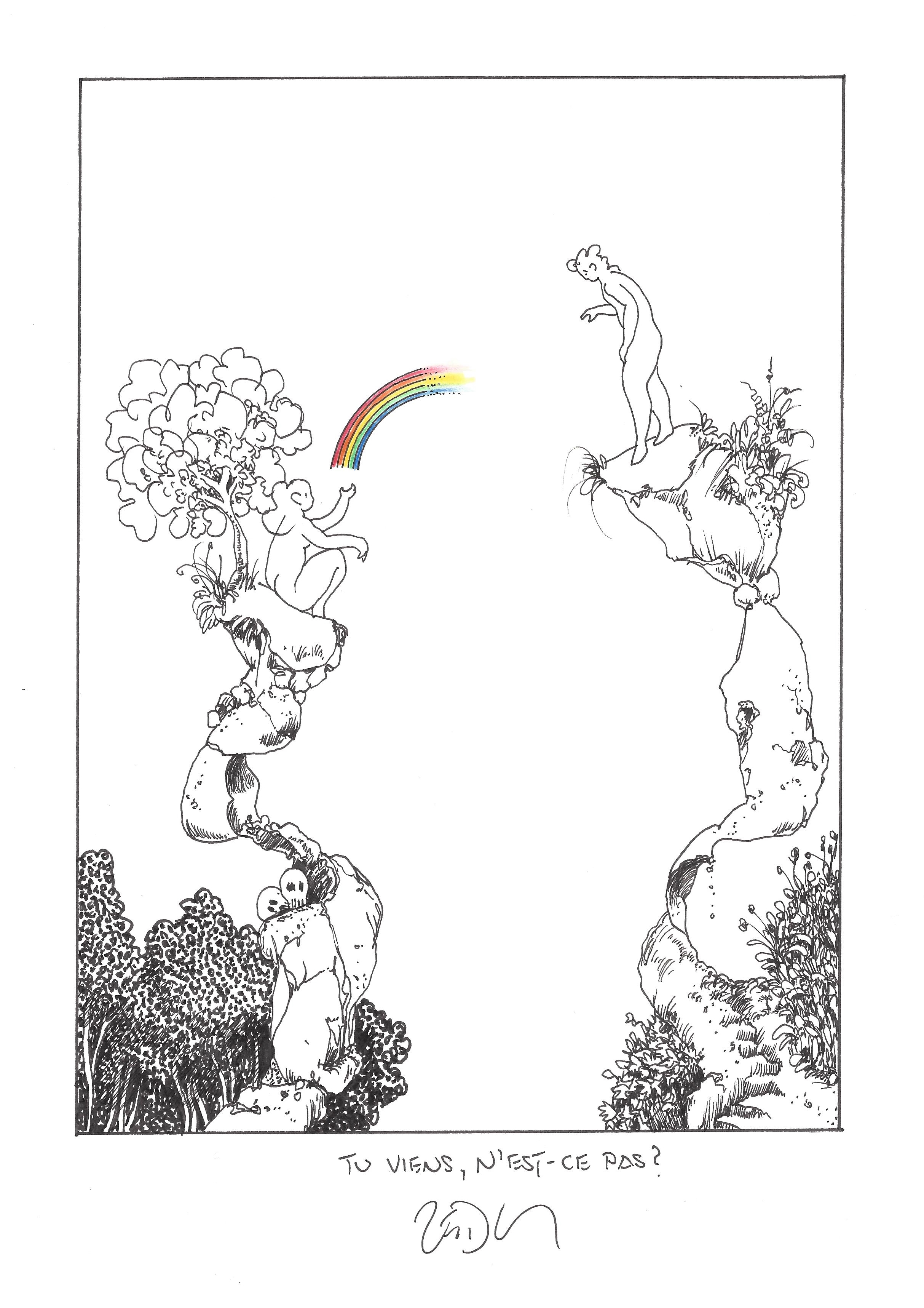 Drawing of the Day – 2450 – Dessin du jour « You are coming, aren’t you ? – Tu viens, n’est-ce pas ? » Ink & color on Paper – 8 x 12″ (21 x 30 cm) – Encre & couleurs sur Papier