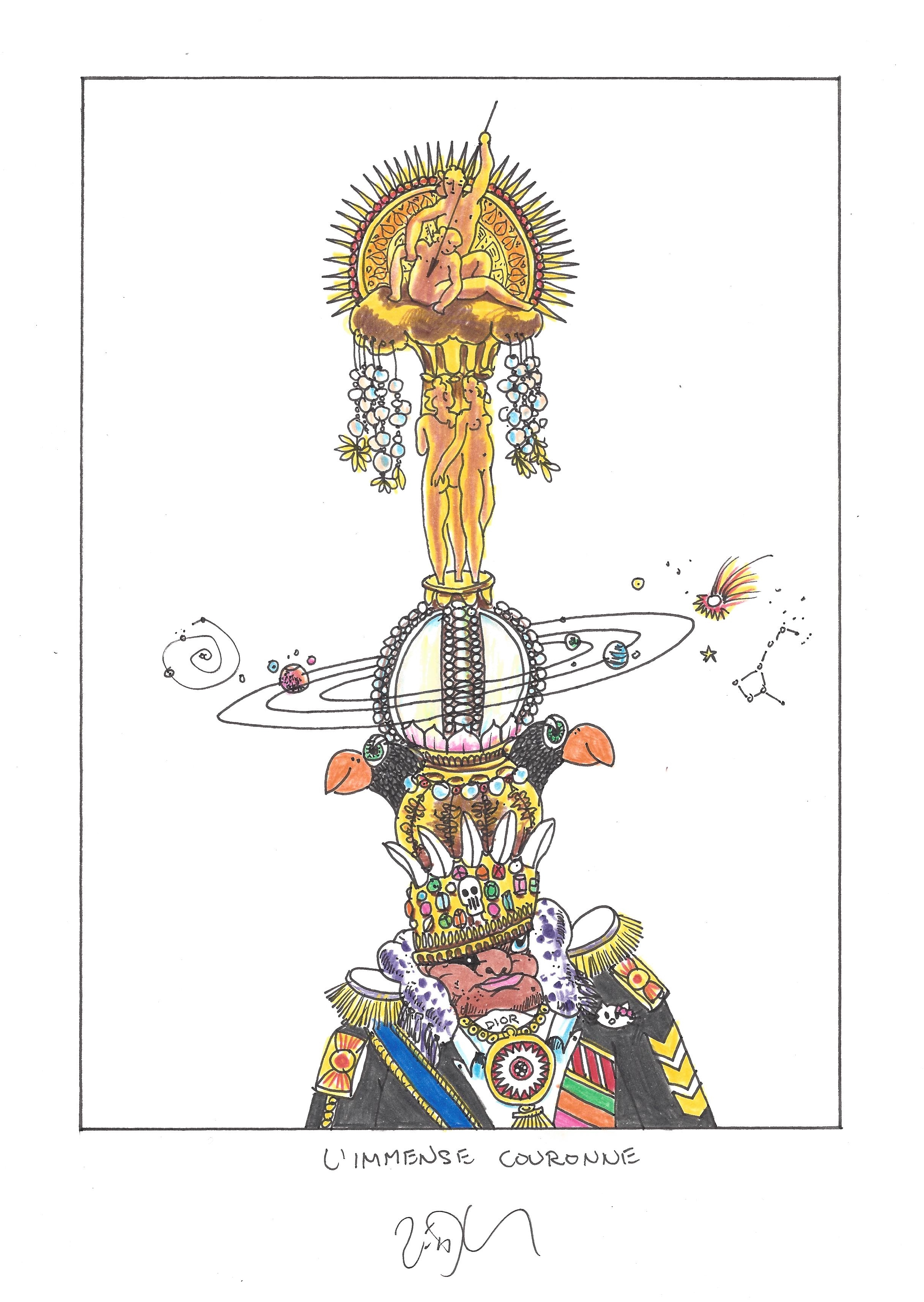 Drawing of the Day – 2454 – Dessin du jour « The great crown – L’immense couronne » Ink & color on Paper – 8 x 12″ (21 x 30 cm) – Encre & couleurs sur Papier
