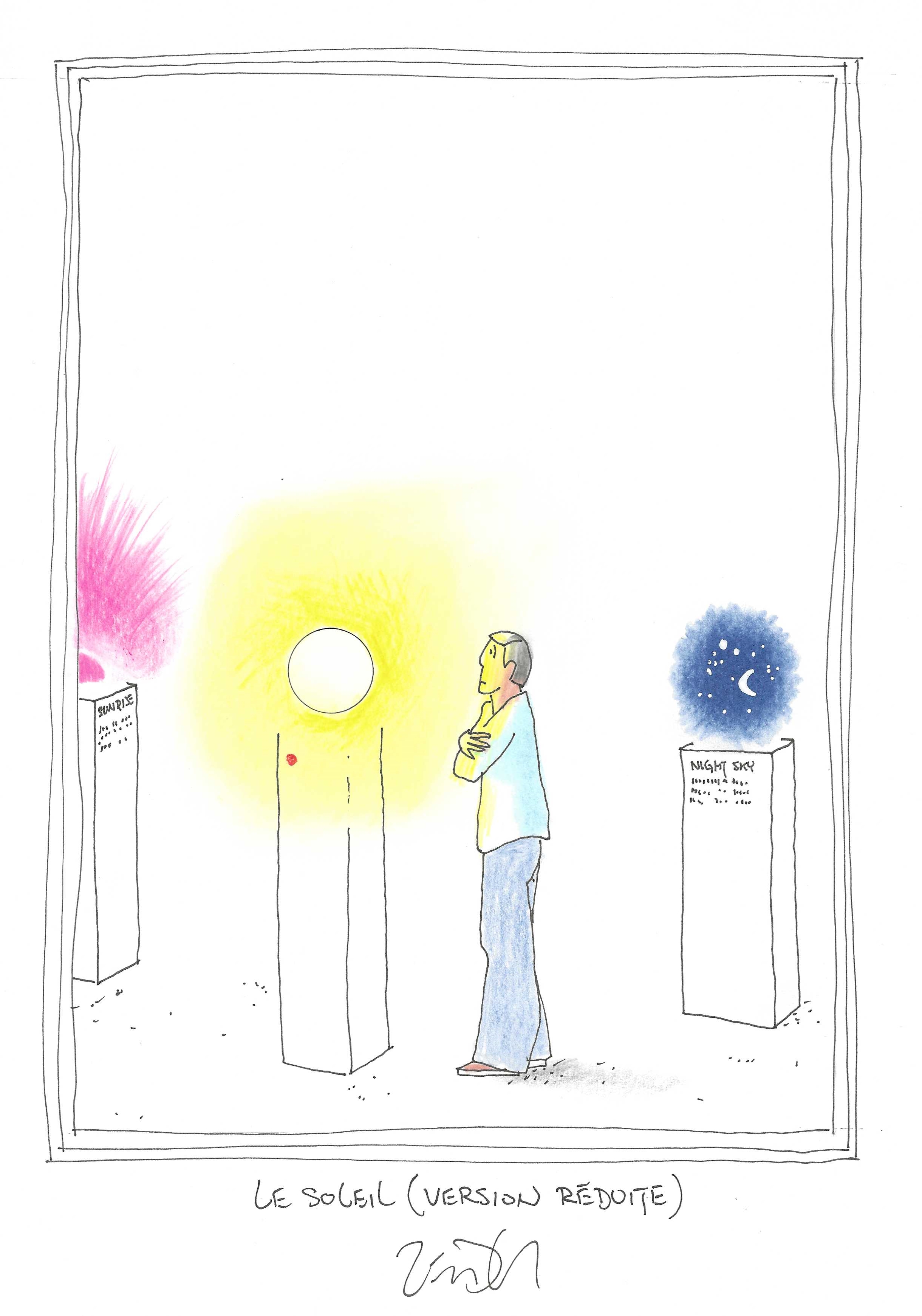 Drawing of the Day – 3594 – Dessin du jour « The sun (small version) – Le soleil (version réduite) Ink & colour on Paper – 8 x 12″ (21 x 30 cm) – Encre & couleurs sur Papier