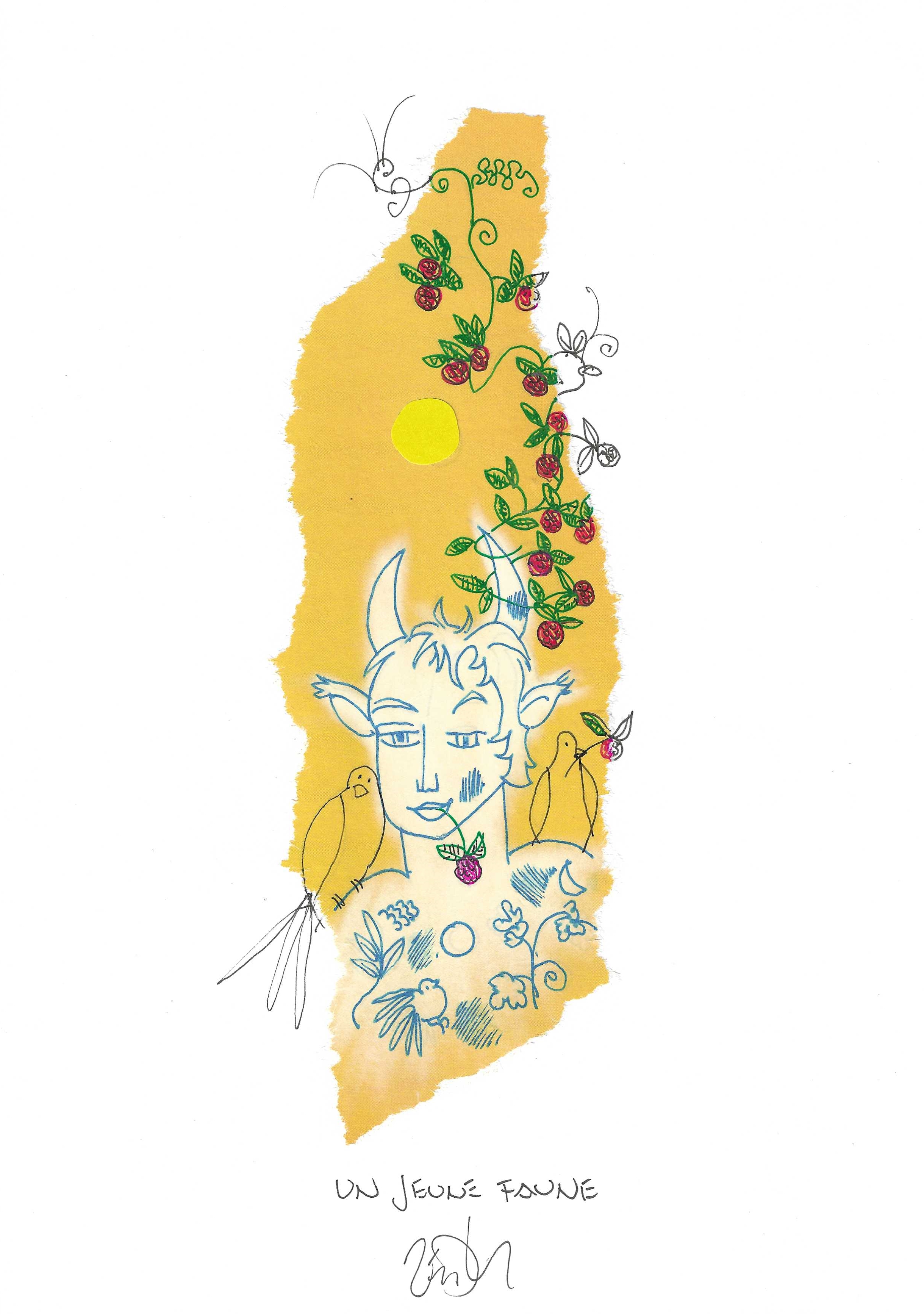 Drawing of the Day – 3596 – Dessin du jour « A young faun – Un jeune faune » Mixed Media on Paper – 8 x 12″ (21 x 30 cm) – Technique mixte sur Papier