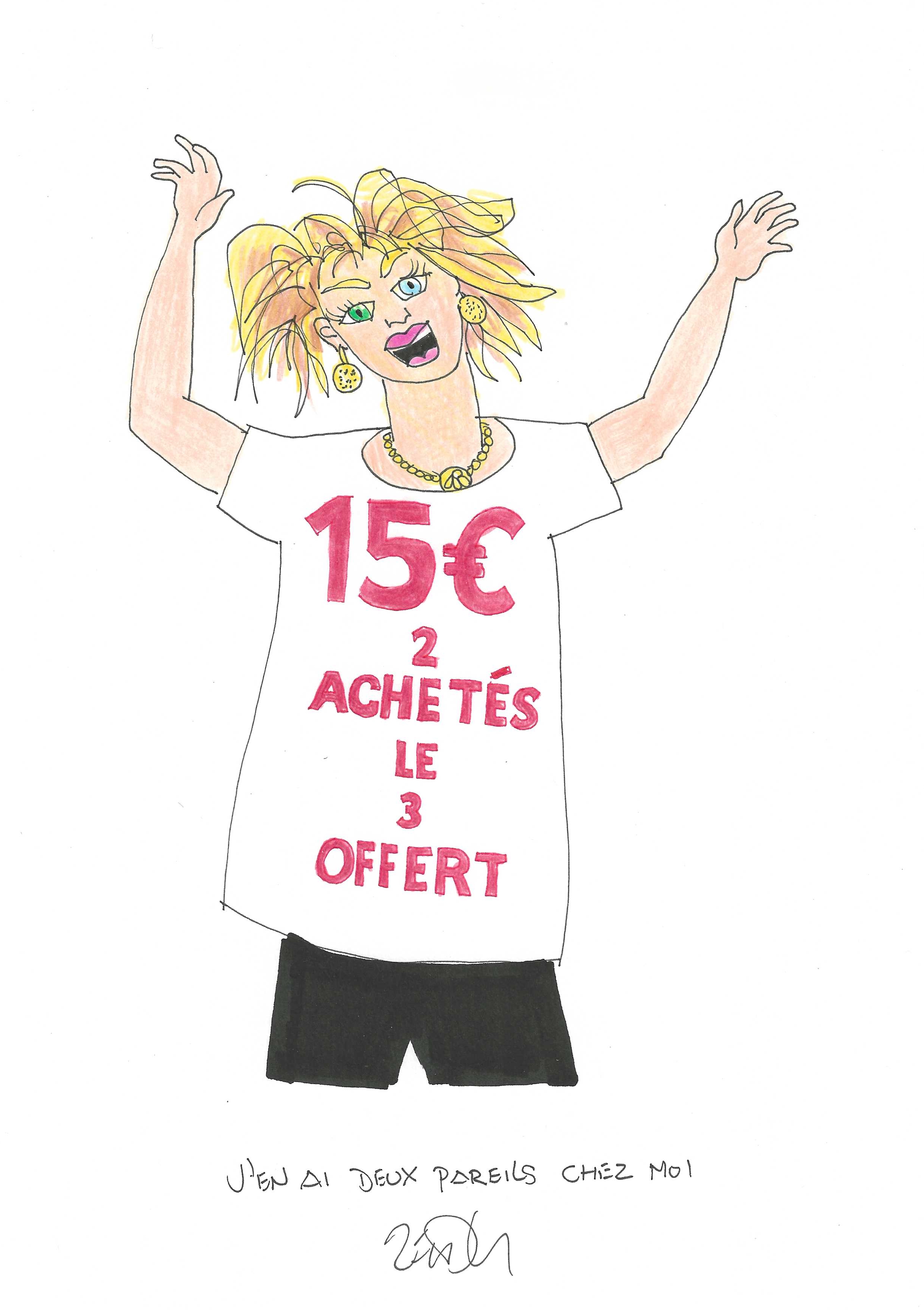 Drawing of the Day – 3598 – Dessin du jour « I’ve got two more at home just like it – J’en ai deux pareils chez moi » Ink & colour on Paper – 8 x 12″ (21 x 30 cm) – Encre & couleurs sur Papier