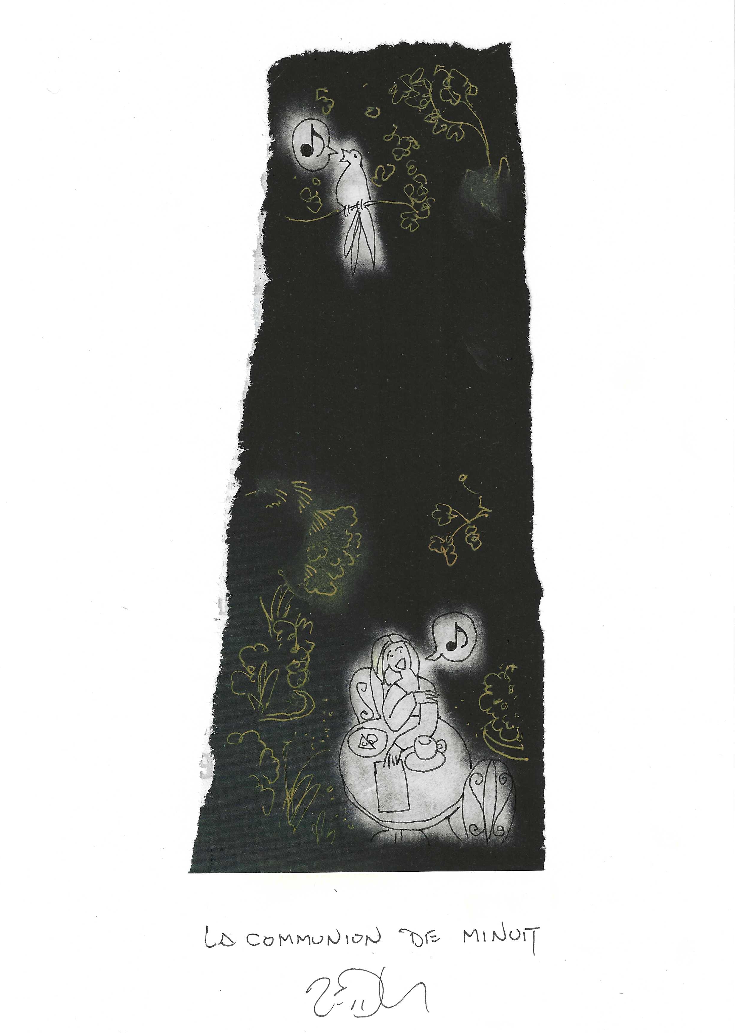 Drawing of the Day – 3600 – Dessin du jour « Midnight communion – La communion de minuit » Mixed Media on Paper – 8 x 12″ (21 x 30 cm) – Technique mixte sur Papier