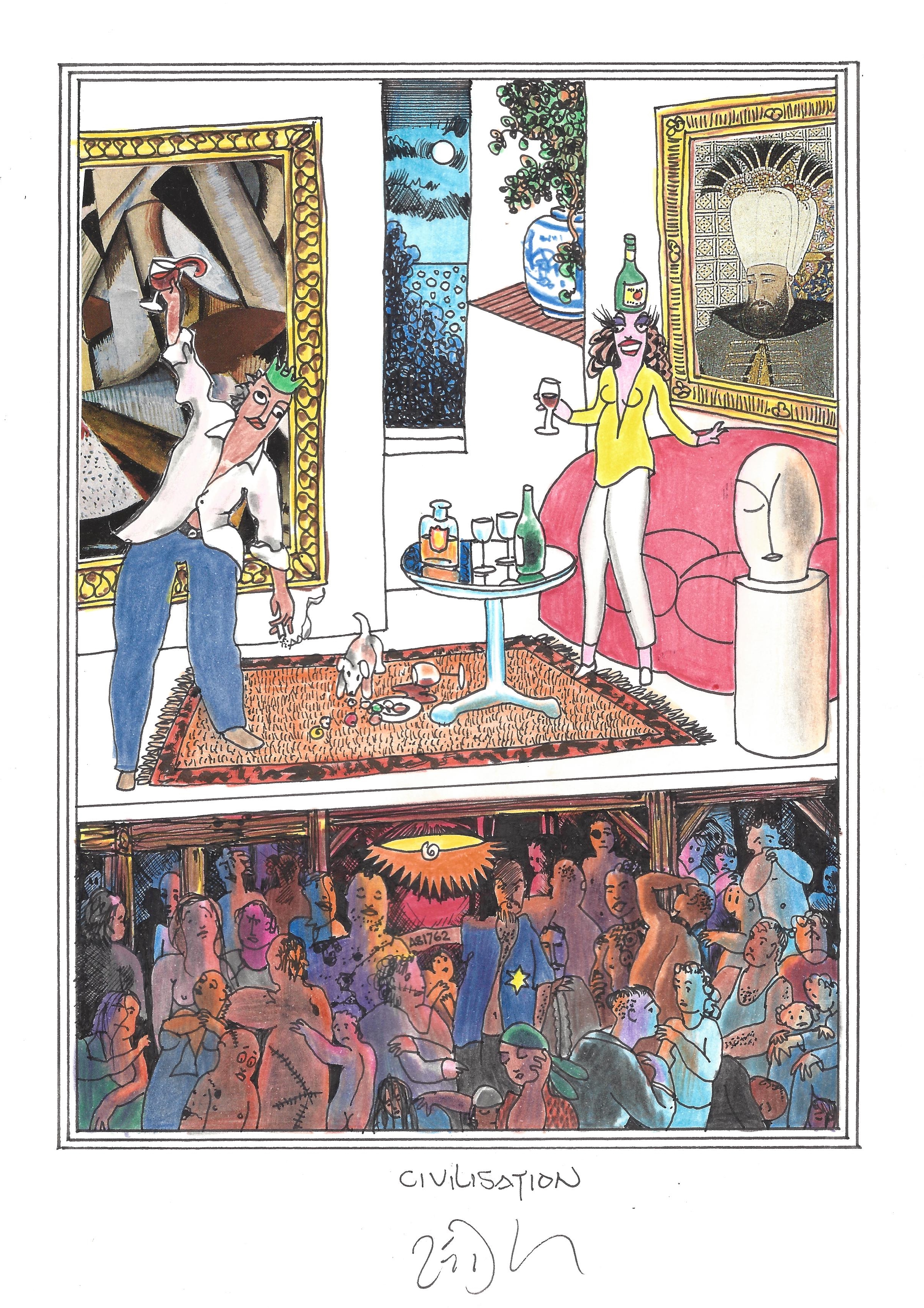 Drawing of the Day – 2433 – Dessin du jour « Civilization – Civilisation » Mixed Media on Paper – 8 x 12″ (21 x 30 cm) – Technique mixte sur Papier