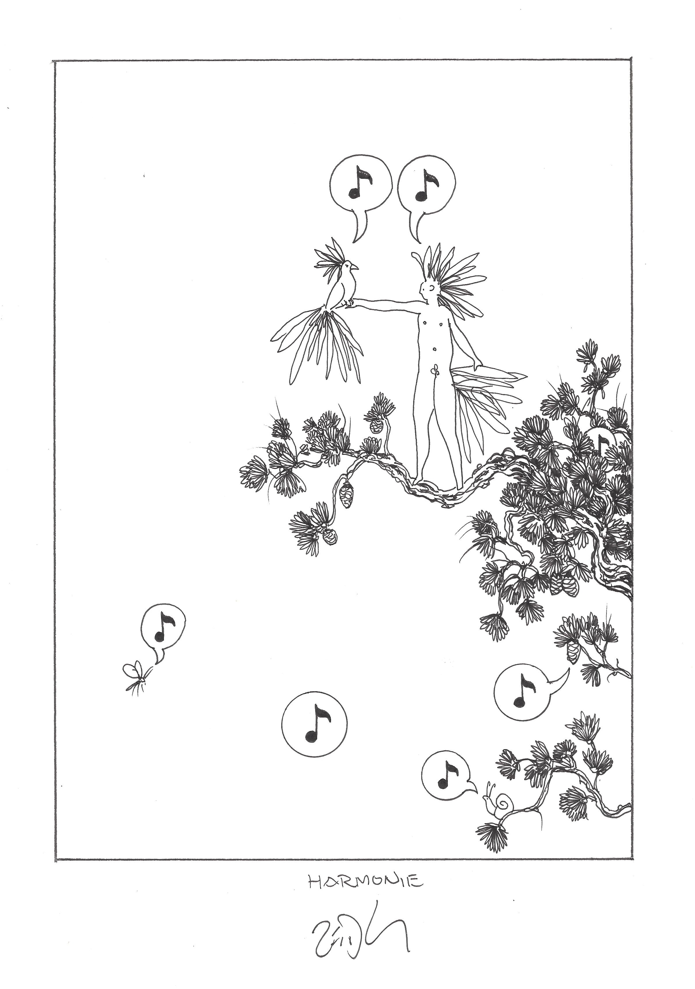 Drawing of the Day – 2435 – Dessin du jour « Harmony – Harmonie » Ink on Paper – 8 x 12″ (21 x 30 cm) – Encre sur Papier