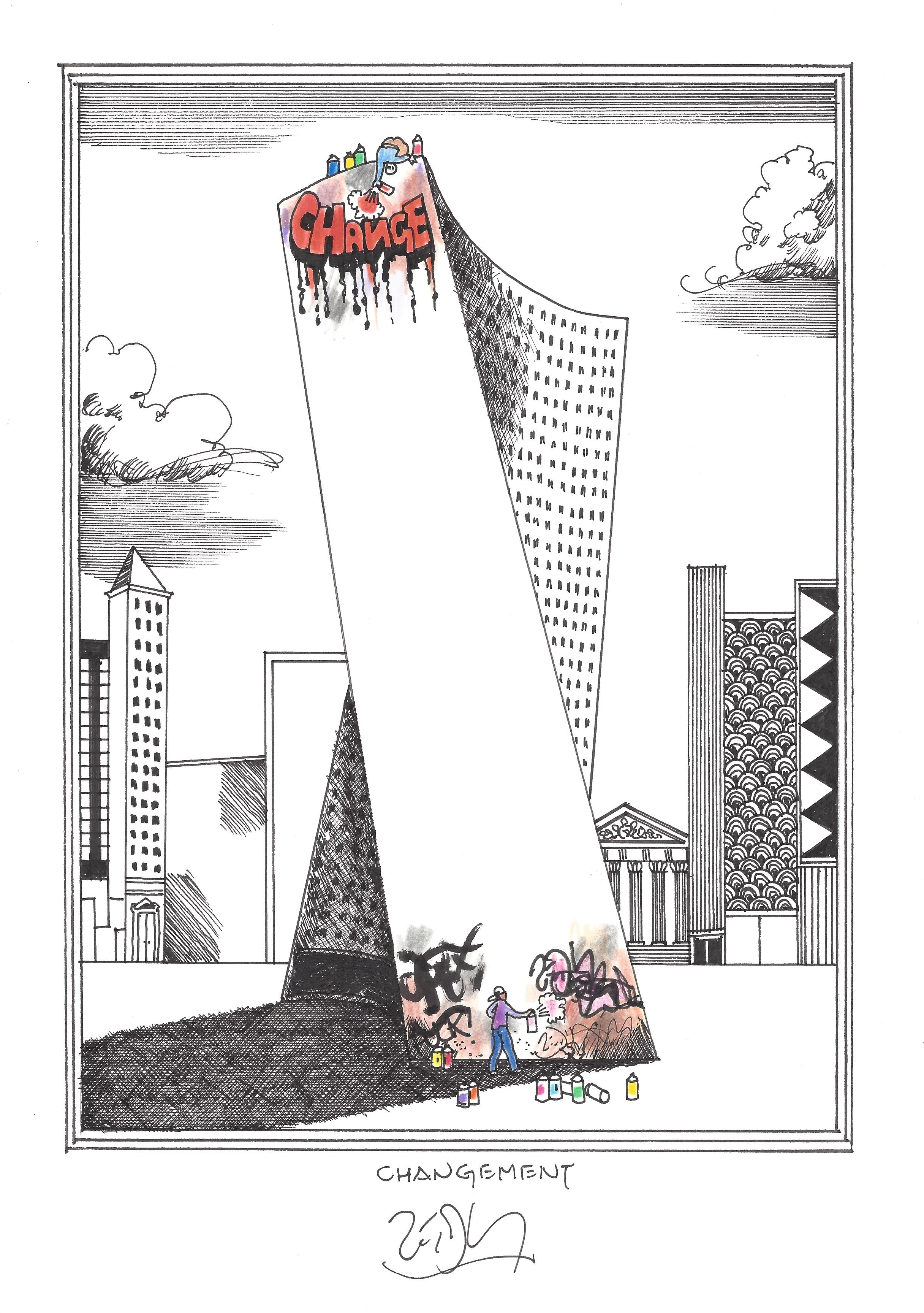 Drawing of the Day – 2438 – Dessin du jour « Change – Changement » Ink & color on Paper – 8 x 12″ (21 x 30 cm) – Encre & couleurs sur Papier