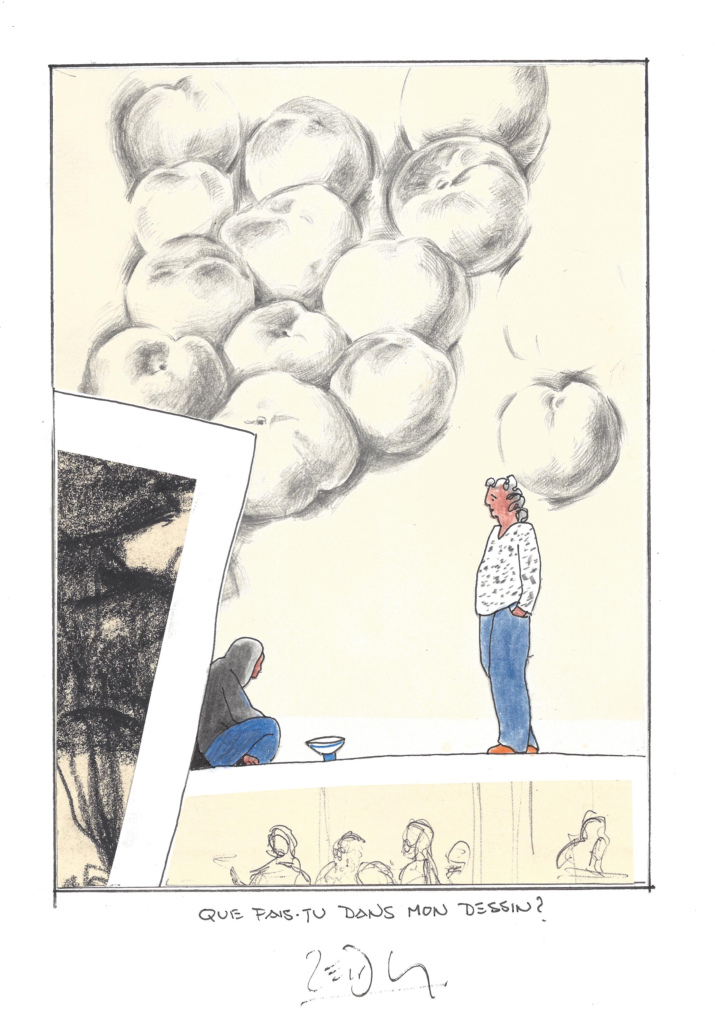 Drawing of the Day – 2439 – Dessin du jour « What are you doing in my drawing ? – Que fais-tu dans mon dessin ? » Mixed Media on Paper – 8 x 12″ (21 x 30 cm) – Technique mixte sur Papier
