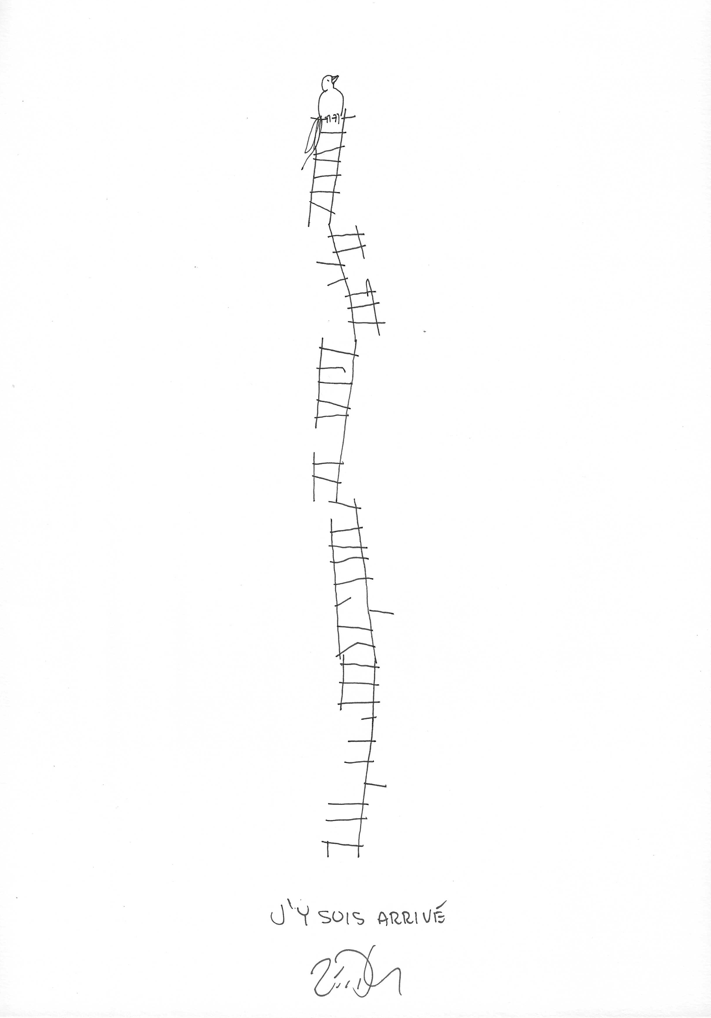 Drawing of the Day – 3553 – Dessin du jour « Made it – J’y suis arrivé » Ink on Paper – 8 x 12″ (21 x 30 cm) – Encre sur Papier