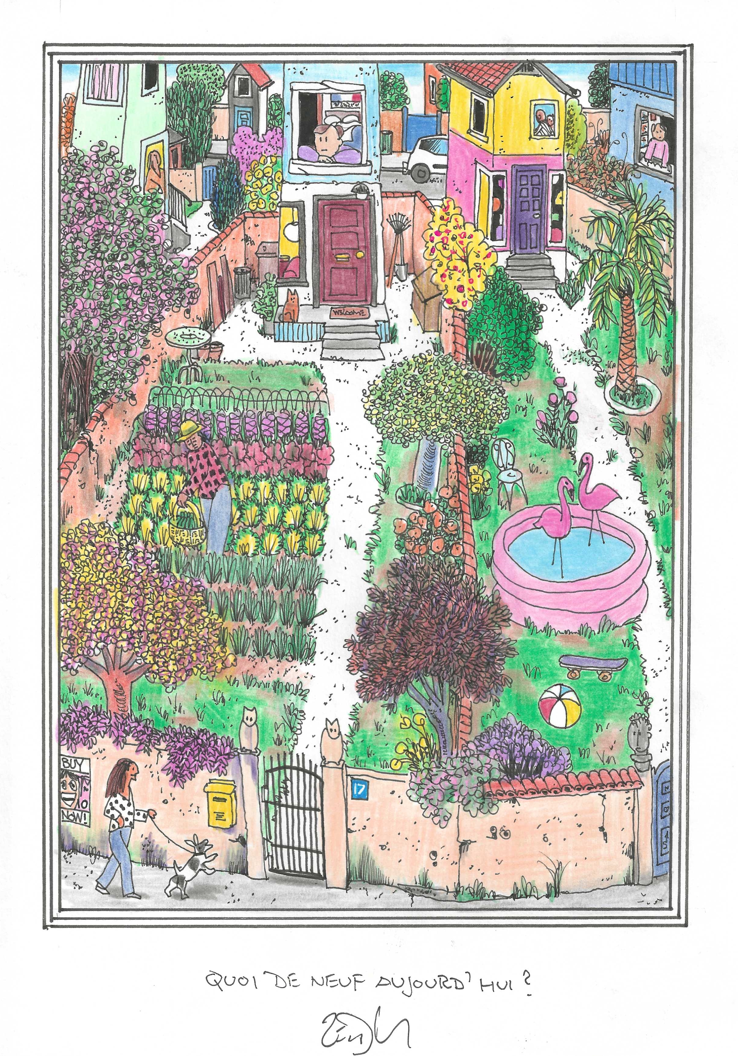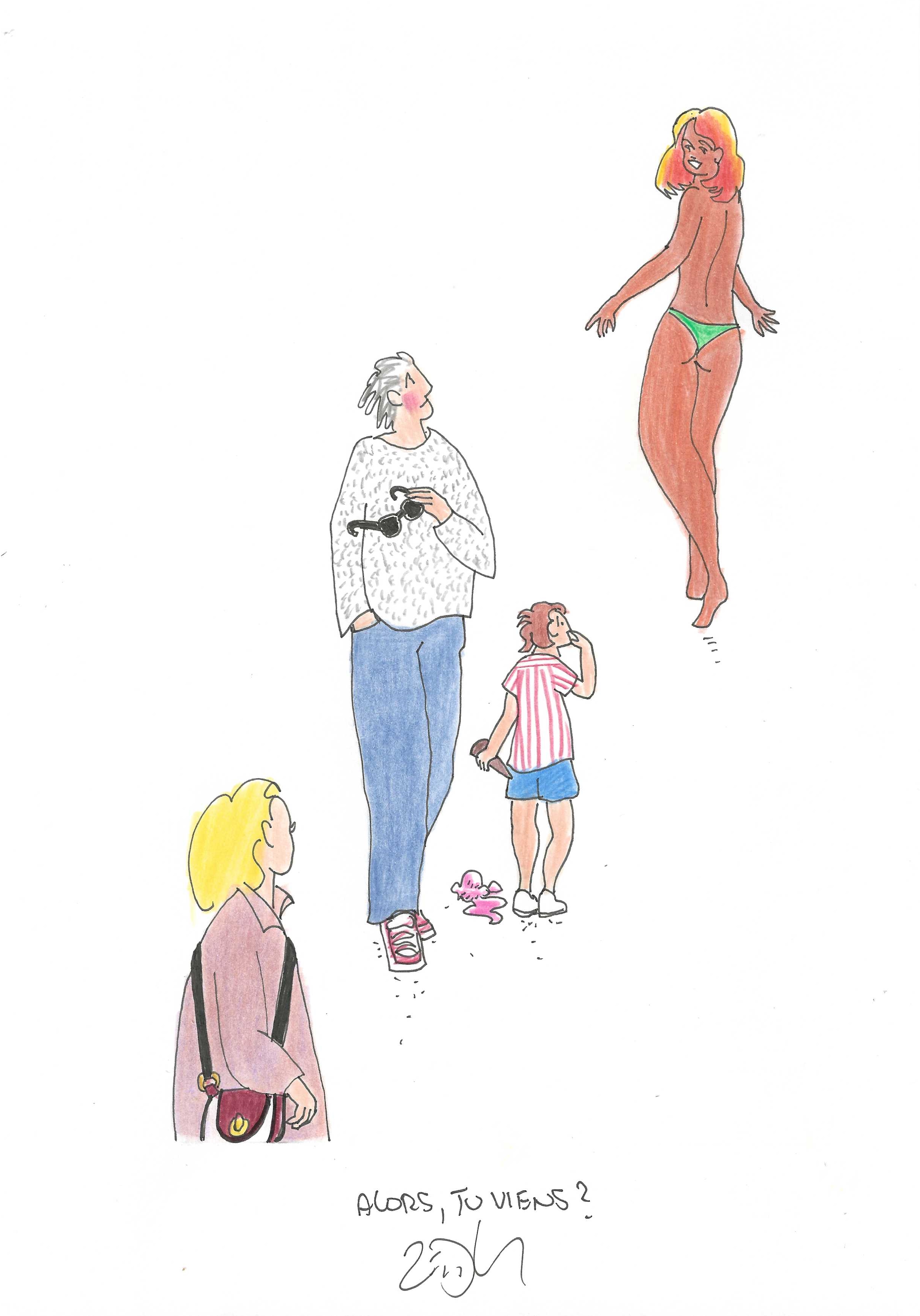 Drawing of the Day – 3416 – Dessin du jour « Are you coming ? – Alors, tu viens ? » Ink & colour on Paper – 8 x 12″ (21 x 30 cm) – Encre & couleurs sur Papier