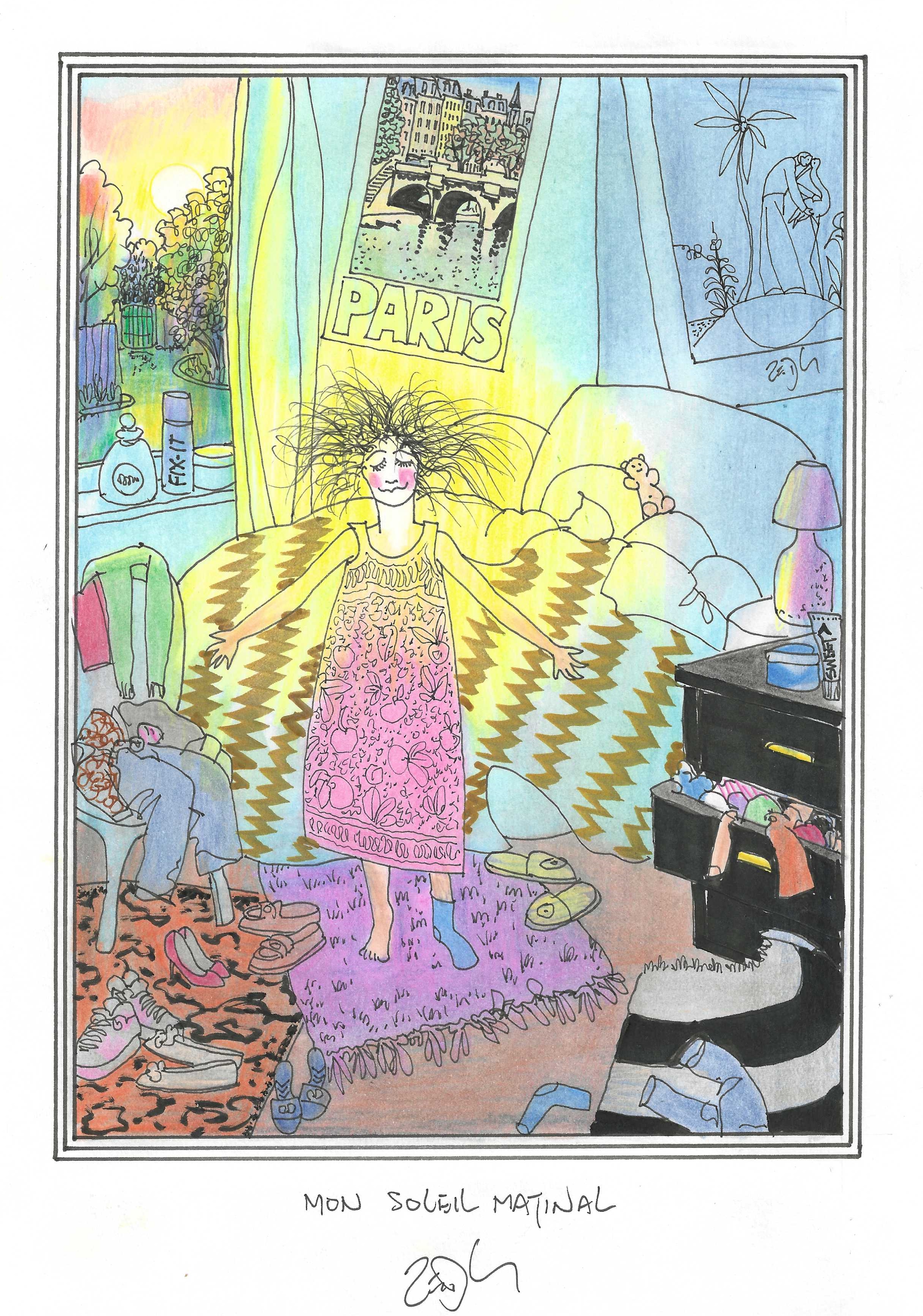 Drawing of the Day – 3417 – Dessin du jour « My morning sun – Mon soleil matinal » Ink & colour on Paper – 8 x 12″ (21 x 30 cm) – Encre & couleurs sur Papier