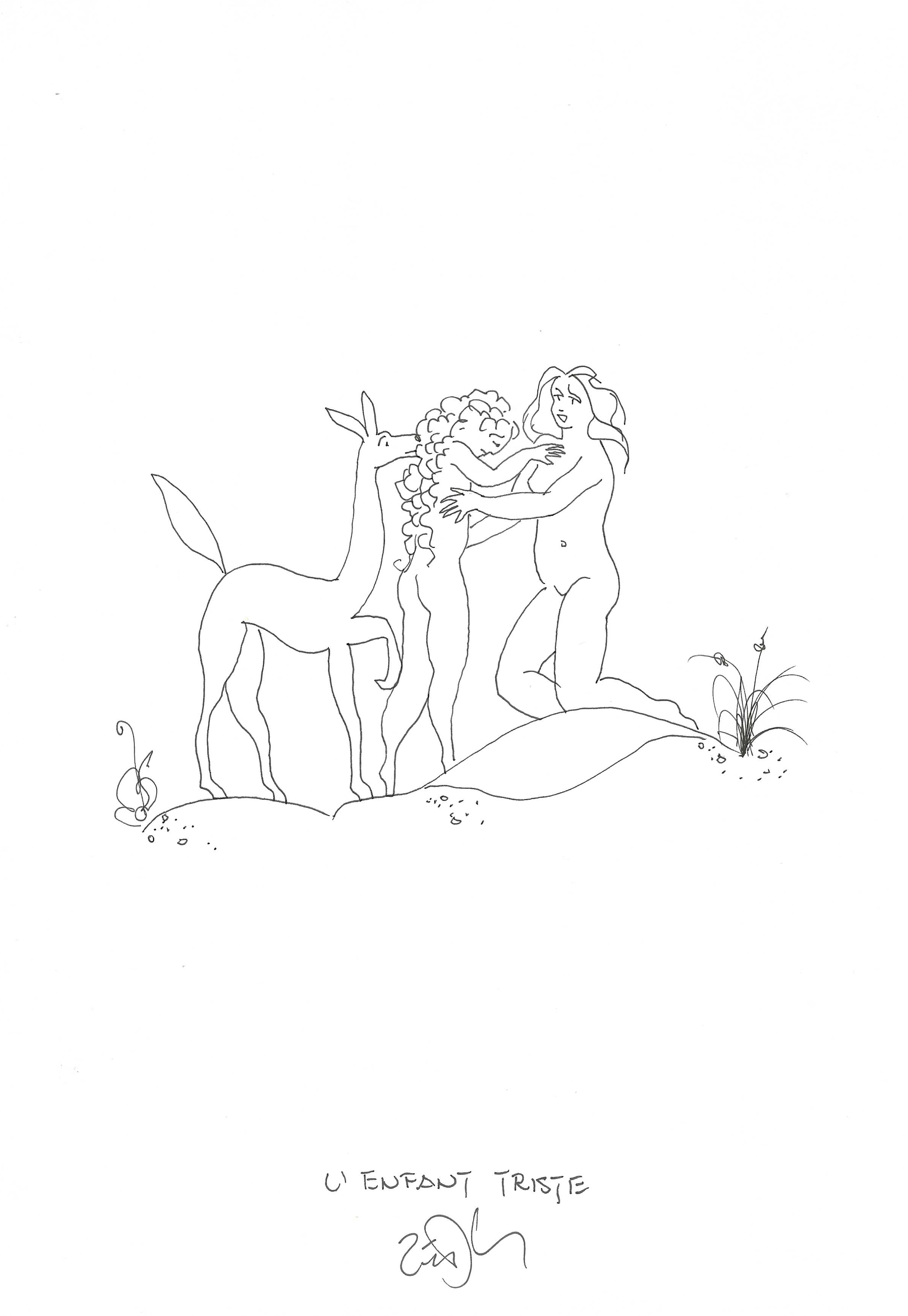 Drawing of the Day – 3420 – Dessin du jour « The sad child – L’enfant triste » Ink on Paper – 8 x 12″ (21 x 30 cm) – Encre sur Papier