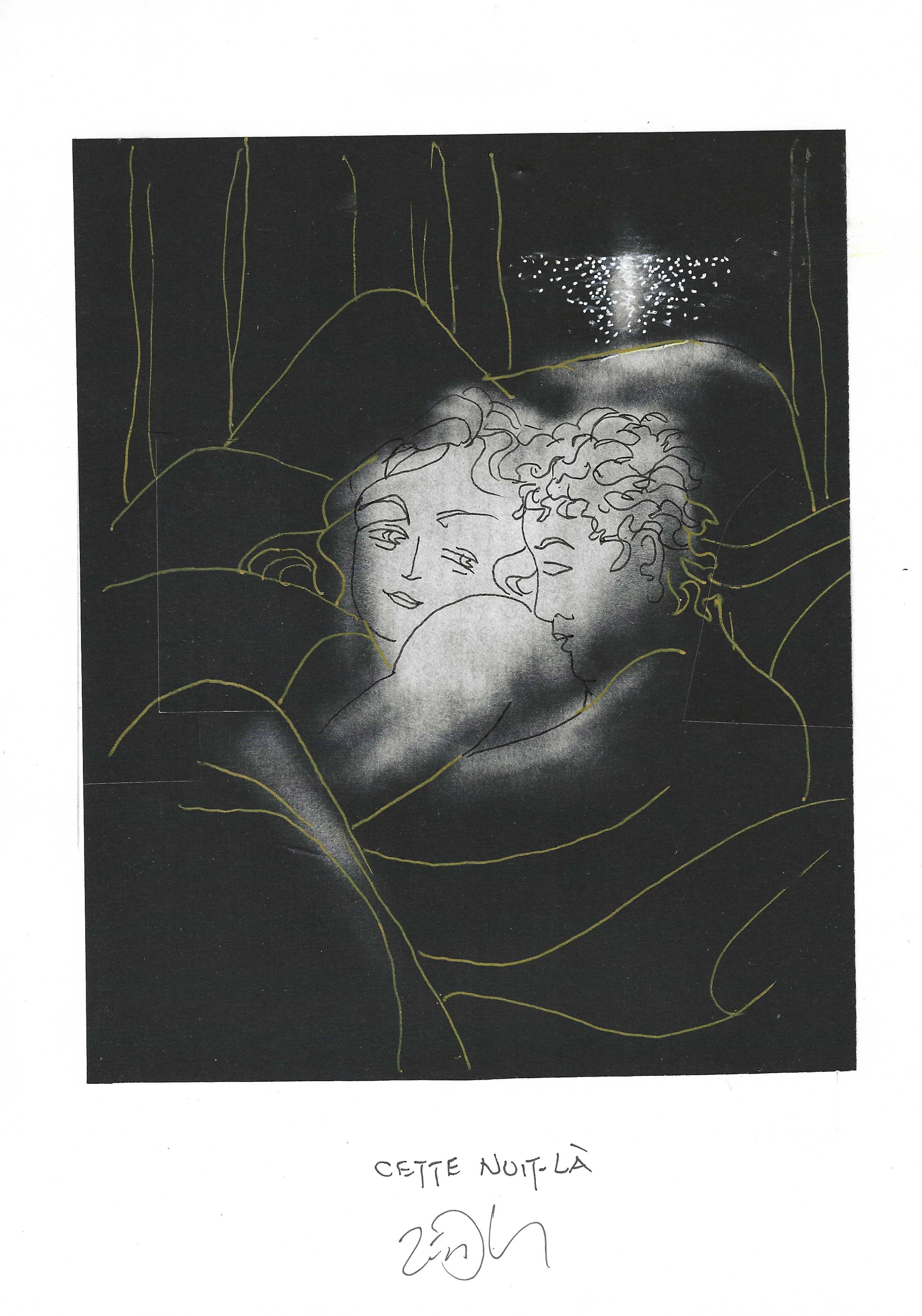 Drawing of the Day – 3407 – Dessin du jour « That night – Cette nuit-là » Mixed Media on Paper – 8 x 12″ (21 x 30 cm) – Technique mixte sur Papier