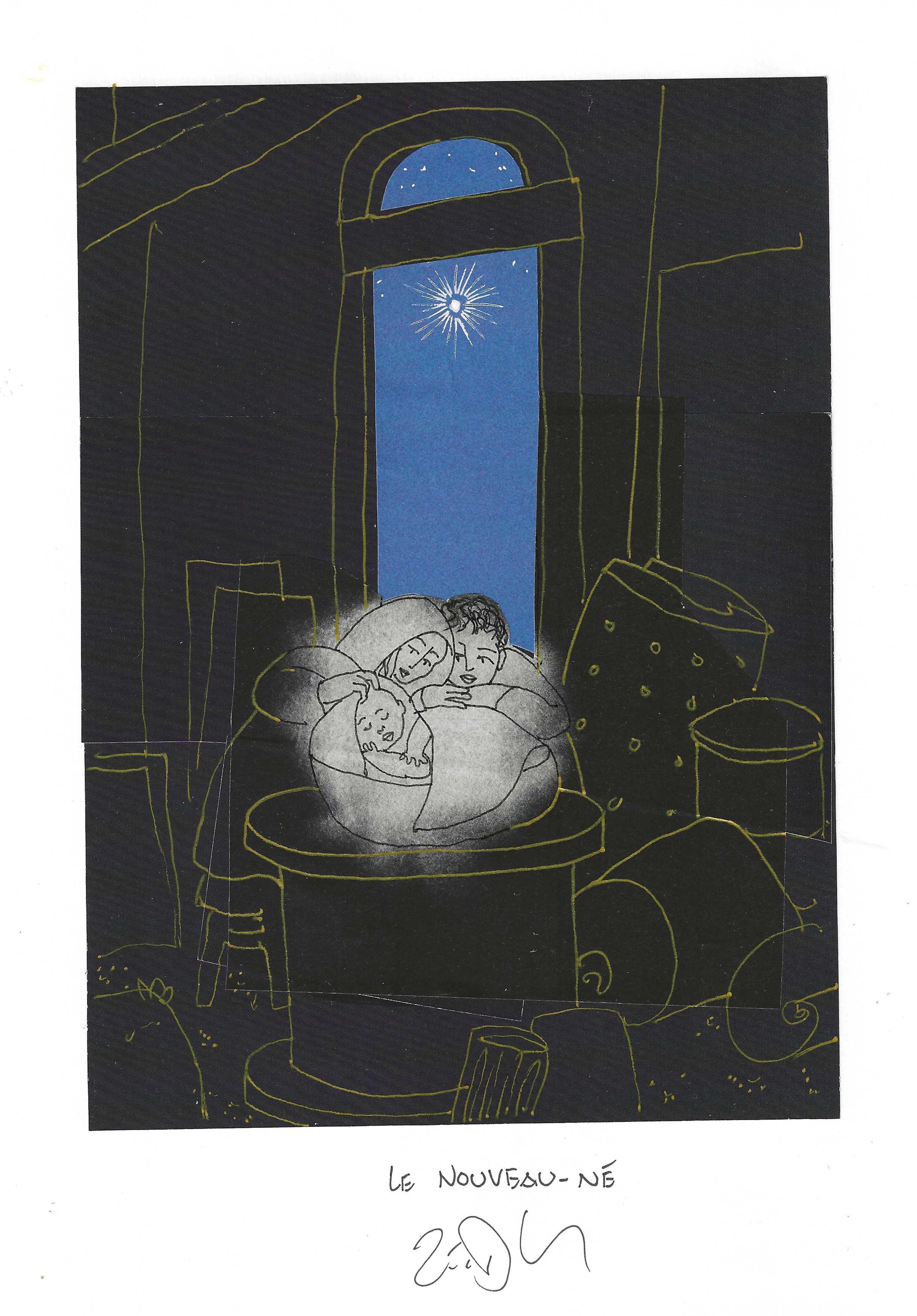 Drawing of the Day – 3409 – Dessin du jour « The new-born – Le nouveau-né » Mixed Media on Paper – 8 x 12″ (21 x 30 cm) – Technique mixte sur Papier