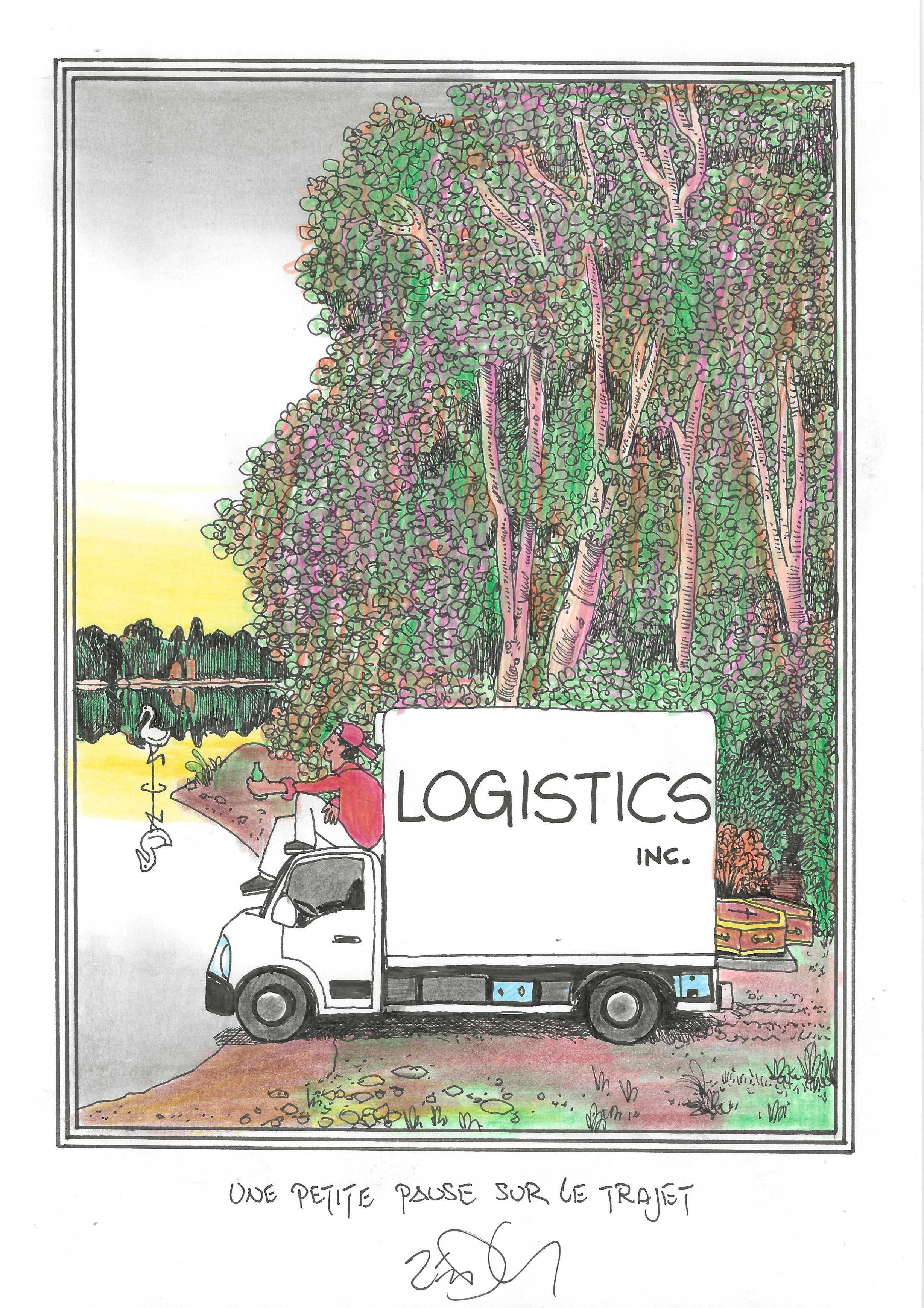 Drawing of the Day – 3412 – Dessin du jour « A break on the journey – Une petite pause sur le trajet » Ink & colour on Paper – 8 x 12″ (21 x 30 cm) – Encre & couleurs sur Papier