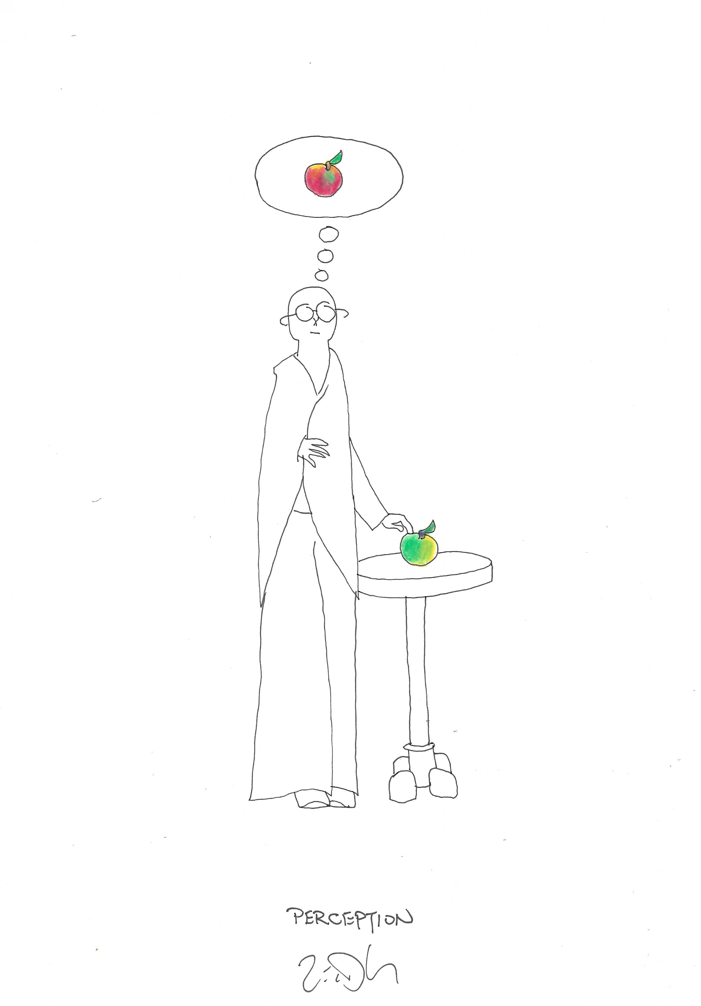 Drawing of the Day – 3413 – Dessin du jour « Perception » Ink & colour on Paper – 8 x 12″ (21 x 30 cm) – Encre & couleurs sur Papier