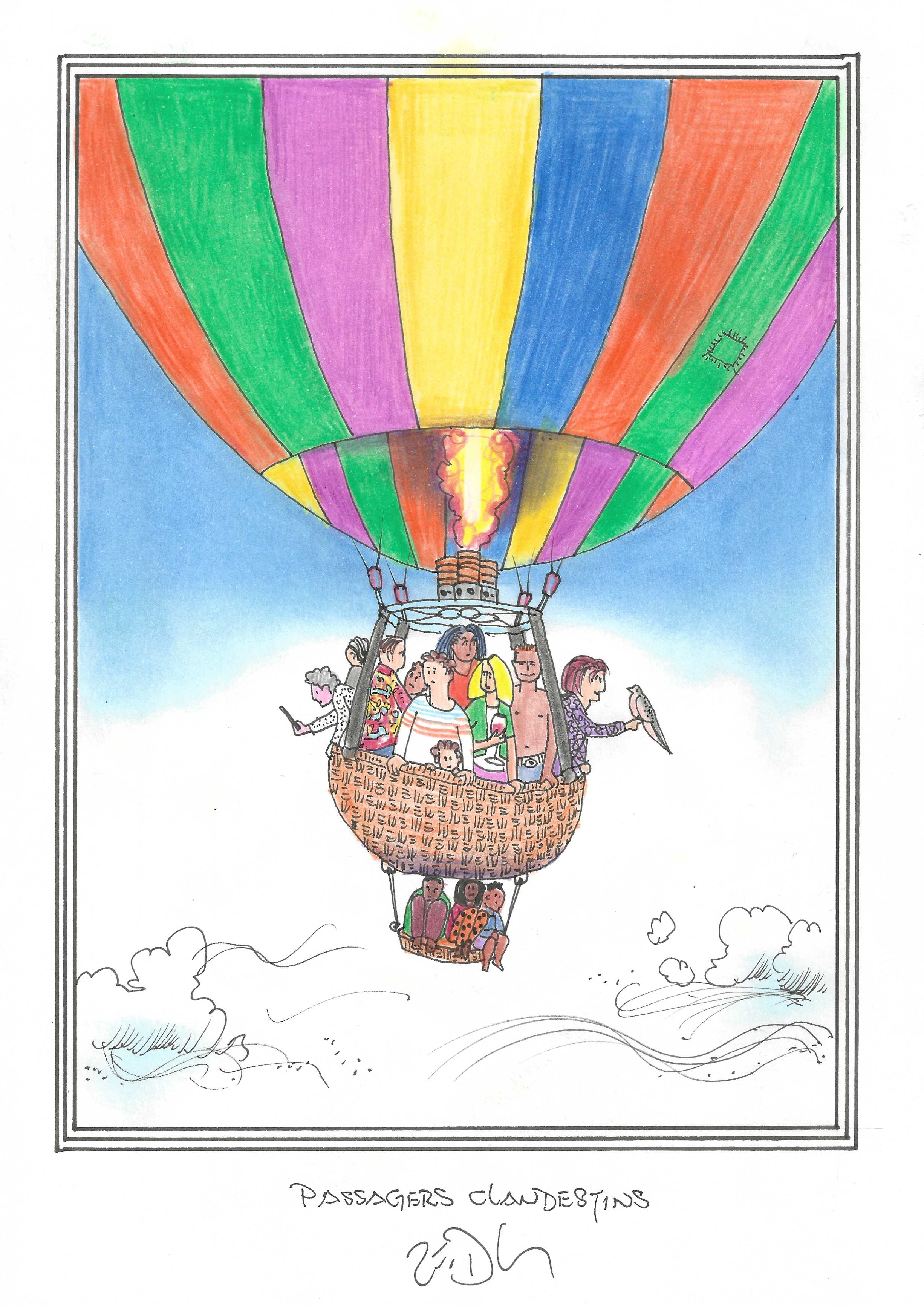 Drawing of the Day – 3390 – Dessin du jour « Stowaways – Passagers Clandestins » Ink & colour on Paper – 8 x 12″ (21 x 30 cm) – Encre & couleurs sur Papier