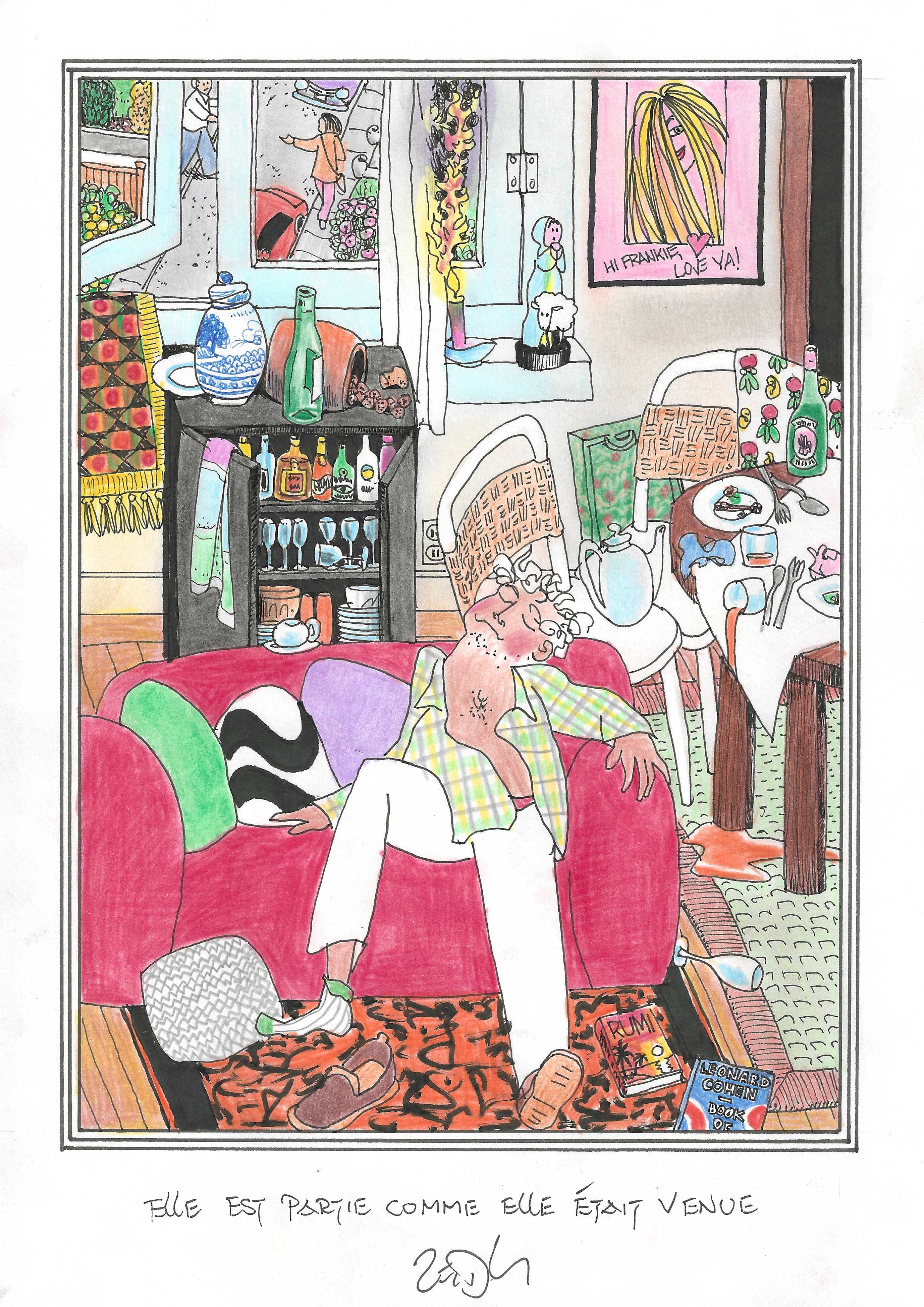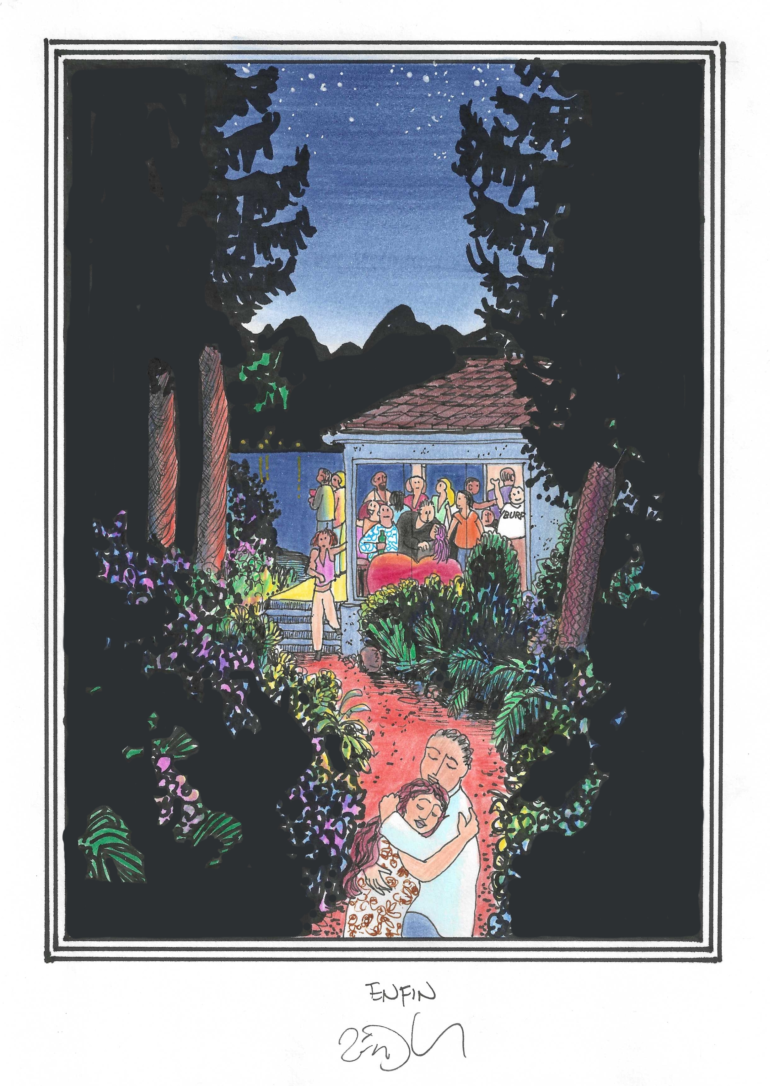 Drawing of the Day – 3366 – Dessin du jour « At last – Enfin » Ink & colour on Paper – 8 x 12″ (21 x 30 cm) – Encre & couleurs sur Papier