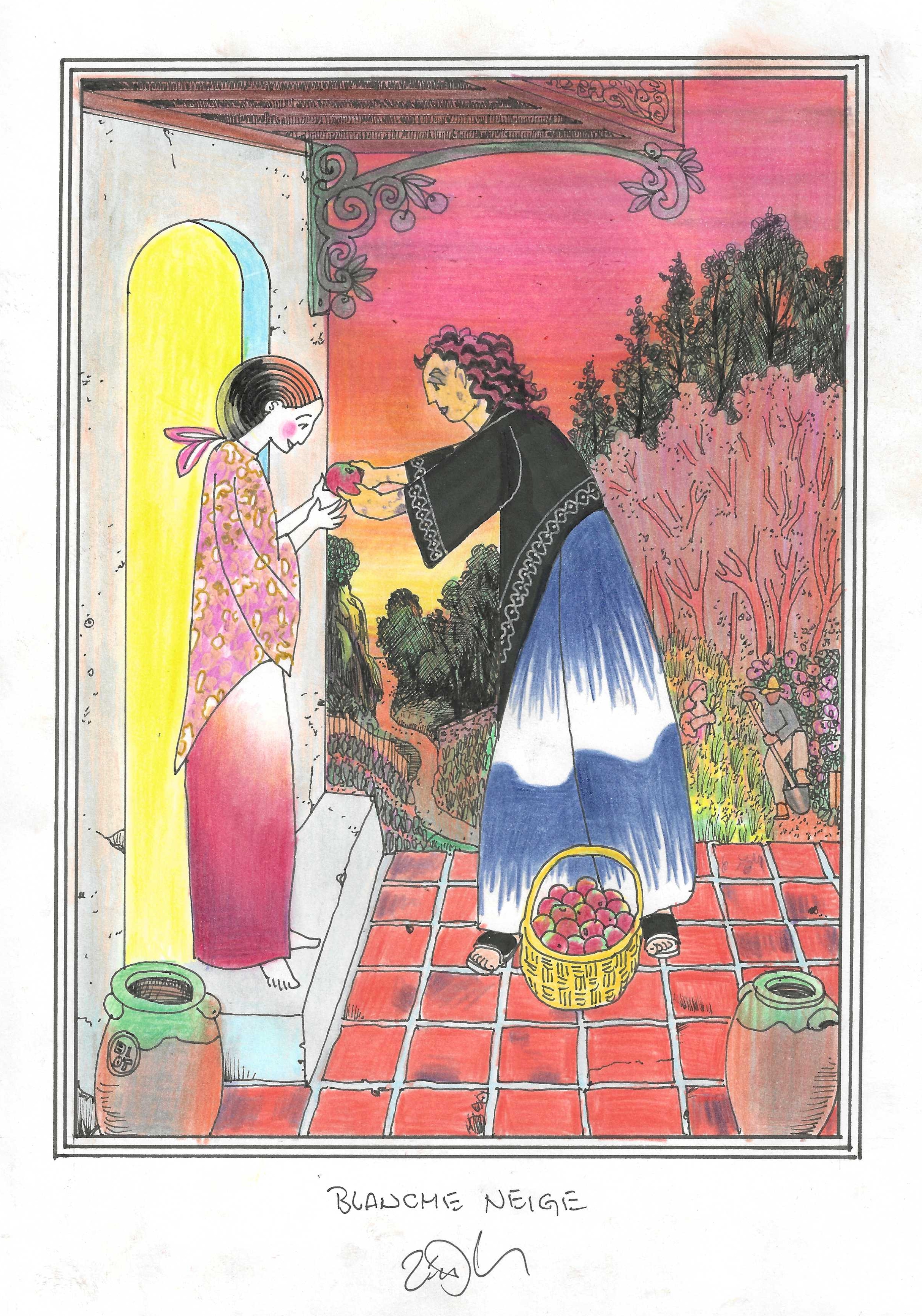 Drawing of the Day – 3373 – Dessin du jour « Snow White – Blanche Neige » Ink & colour on Paper – 8 x 12″ (21 x 30 cm) – Encre & couleurs sur Papier
