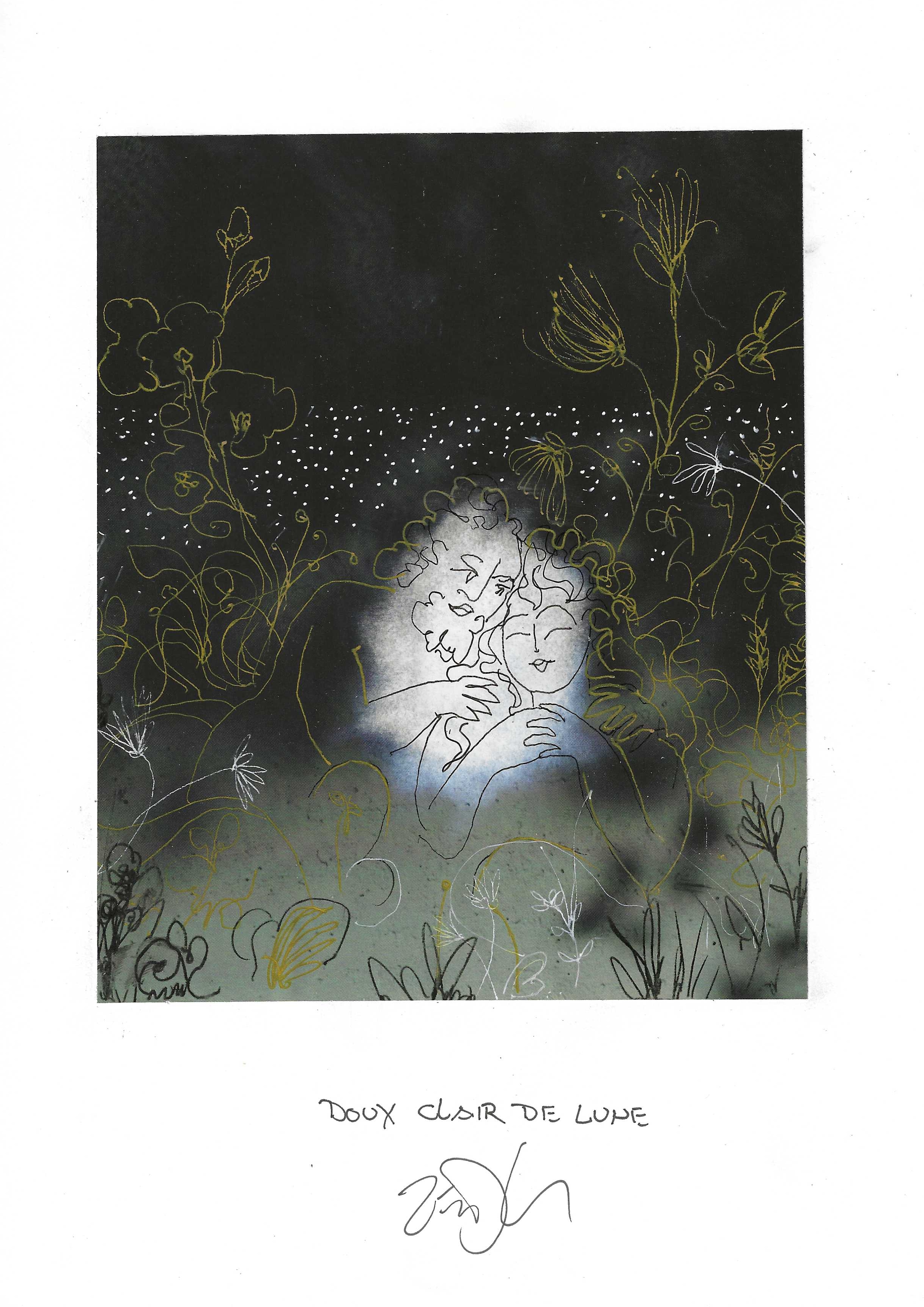 Drawing of the Day – 3374 – Dessin du jour « Sweet moonlight – Doux clair de lune » Mixed Media on Paper – 8 x 12″ (21 x 30 cm) – Technique mixte sur Papier