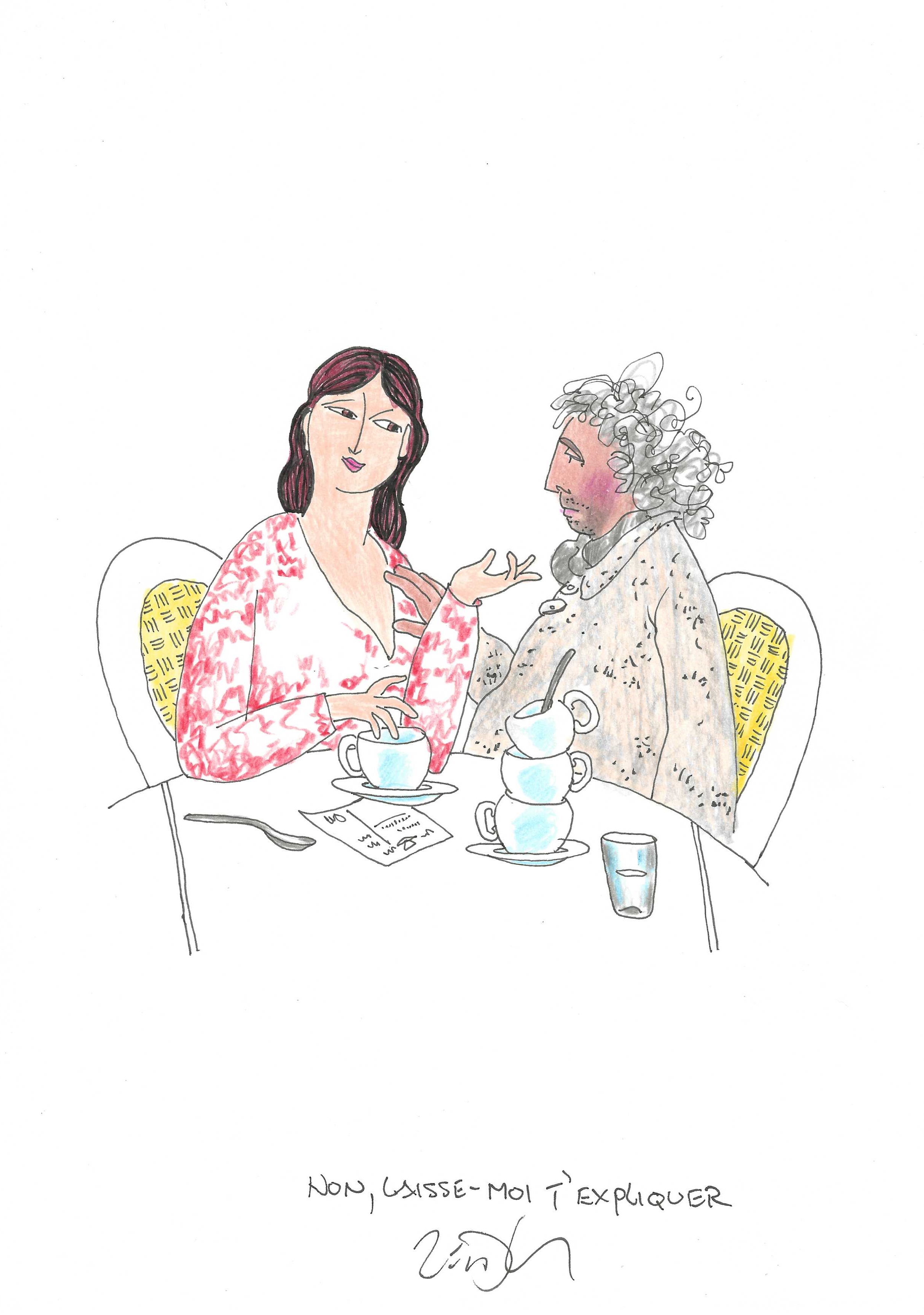 Drawing of the Day – 3345 – Dessin du jour « No, let me explain to you – Non, laisse-moi t’expliquer » Ink & colour on Paper – 8 x 12″ (21 x 30 cm) – Encre & couleurs sur Papier