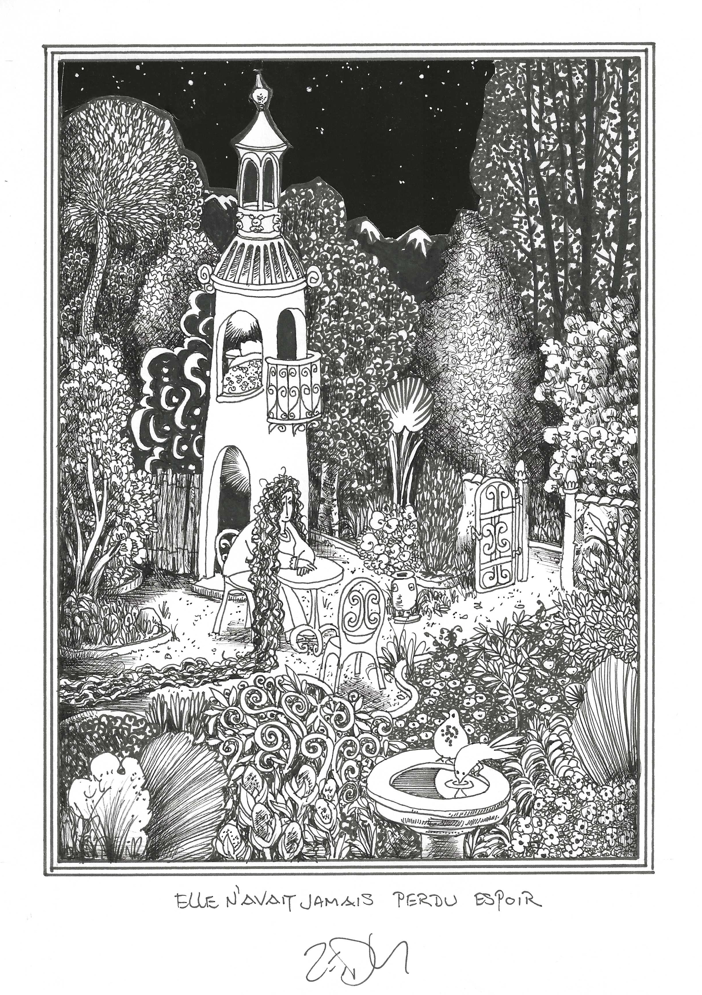 Drawing of the Day – 3348 – Dessin du jour « She never lost hope – Elle n’avait jamais perdu espoir » Ink on Paper – 8 x 12″ (21 x 30 cm) – Encre sur Papier