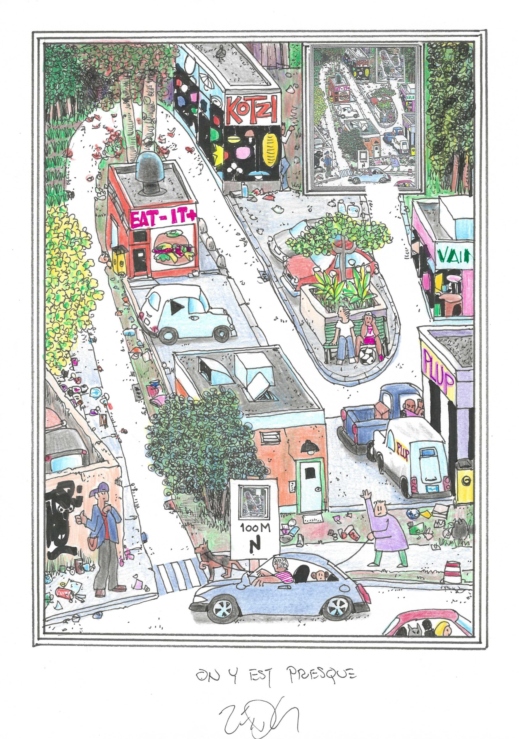 Drawing of the Day – 3722 – Dessin du Jour « Almost there – On y est presque » Ink & colour on Paper – 8 x 12″ (21 x 30 cm) – Encre & couleurs sur Papier