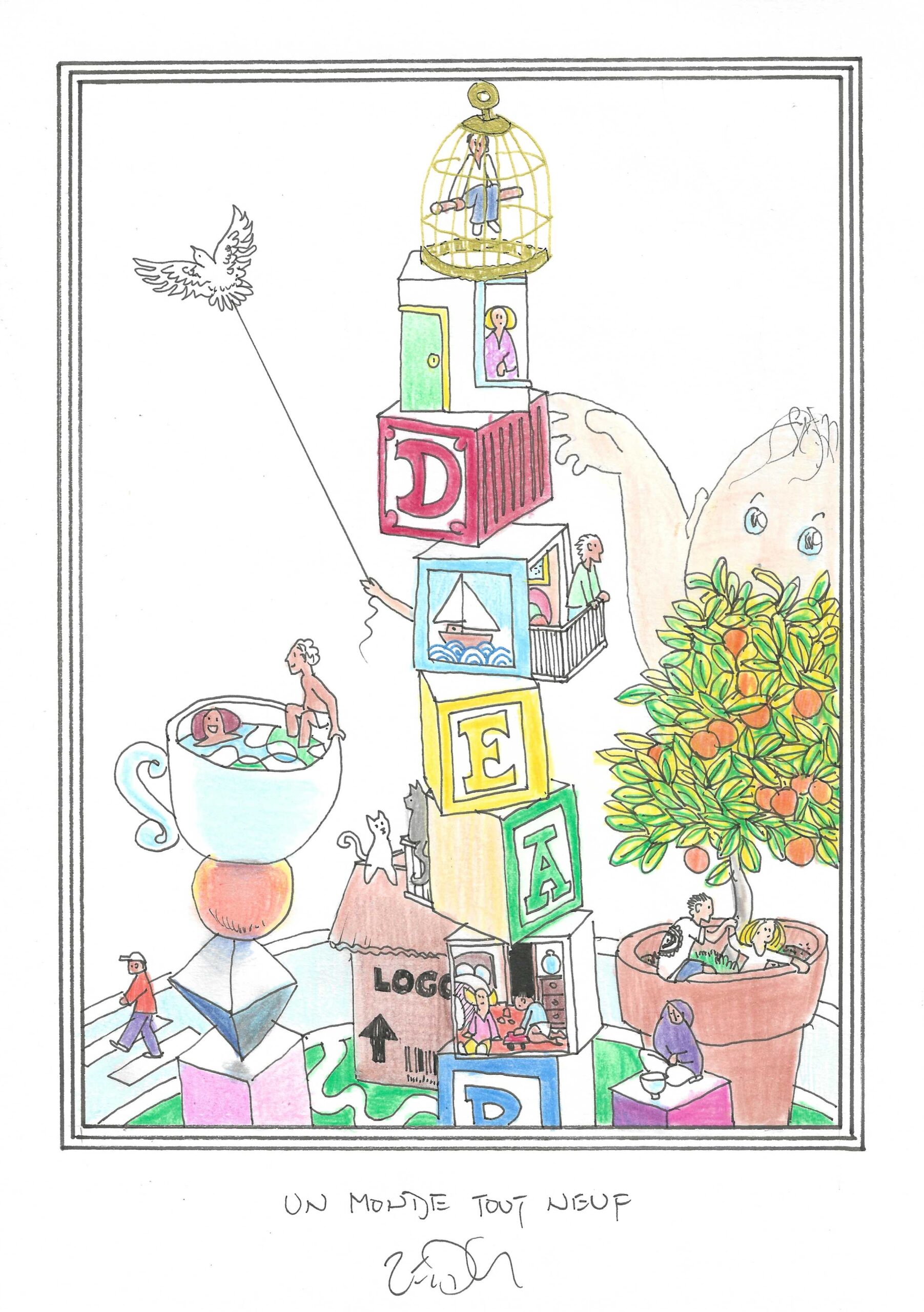 Drawing of the Day – 3724 – Dessin du Jour « The new world – Un monde tout neuf » Ink & colour on Paper – 8 x 12″ (21 x 30 cm) – Encre & couleurs sur Papier