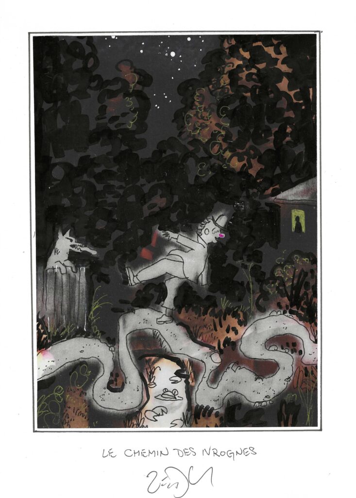 Drawing of the Day – 3725 – Dessin du Jour « The drunkard’s path – Le chemin des ivrognes » Mixed Media on Paper – 8 x 12″ (21 x 30 cm) – Technique mixte sur Papier