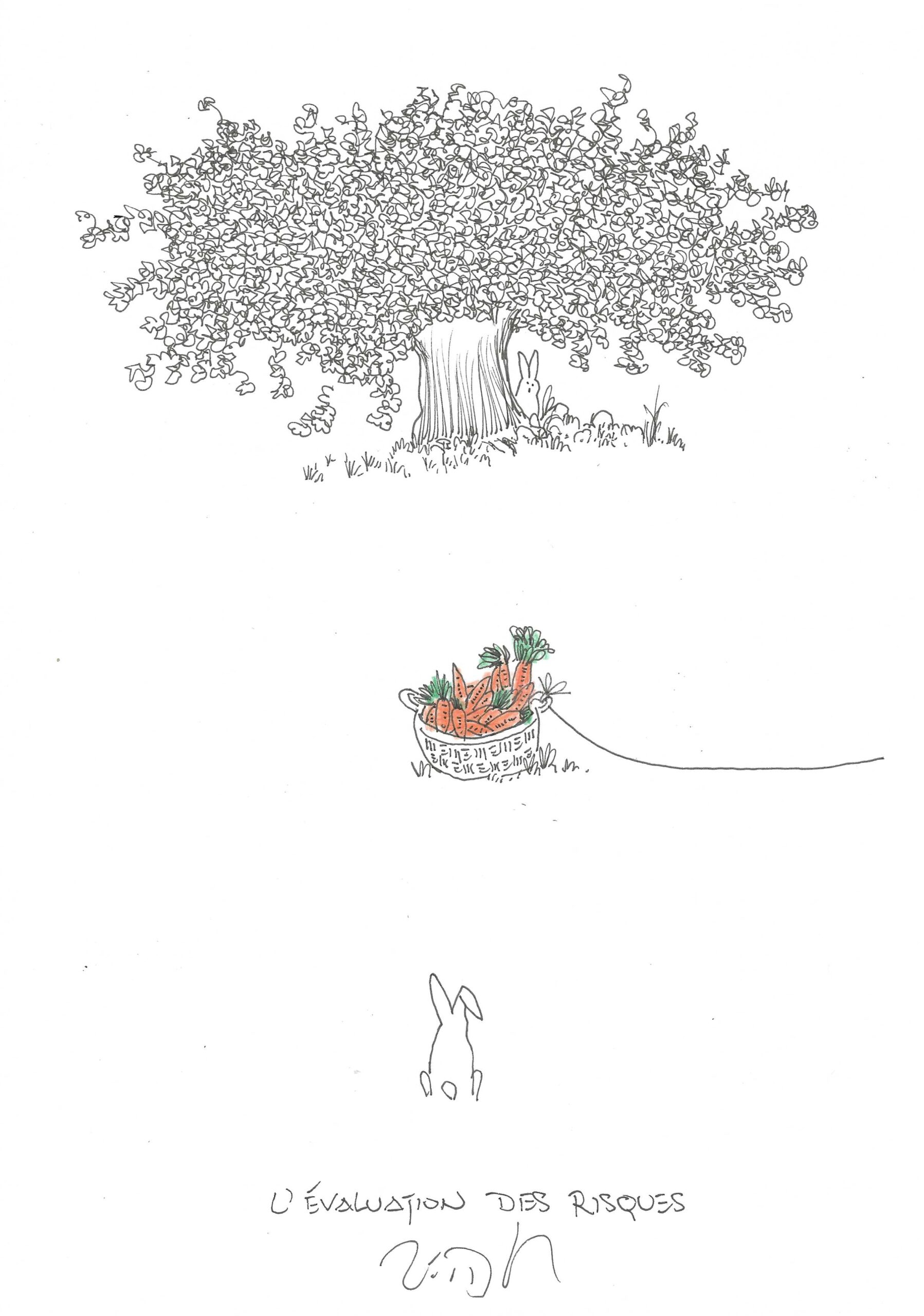 Drawing of the Day – 3726 – Dessin du Jour « Assessing the odds – L’évaluation des risques » Ink & colour on Paper – 8 x 12″ (21 x 30 cm) – Encre & couleurs sur Papier