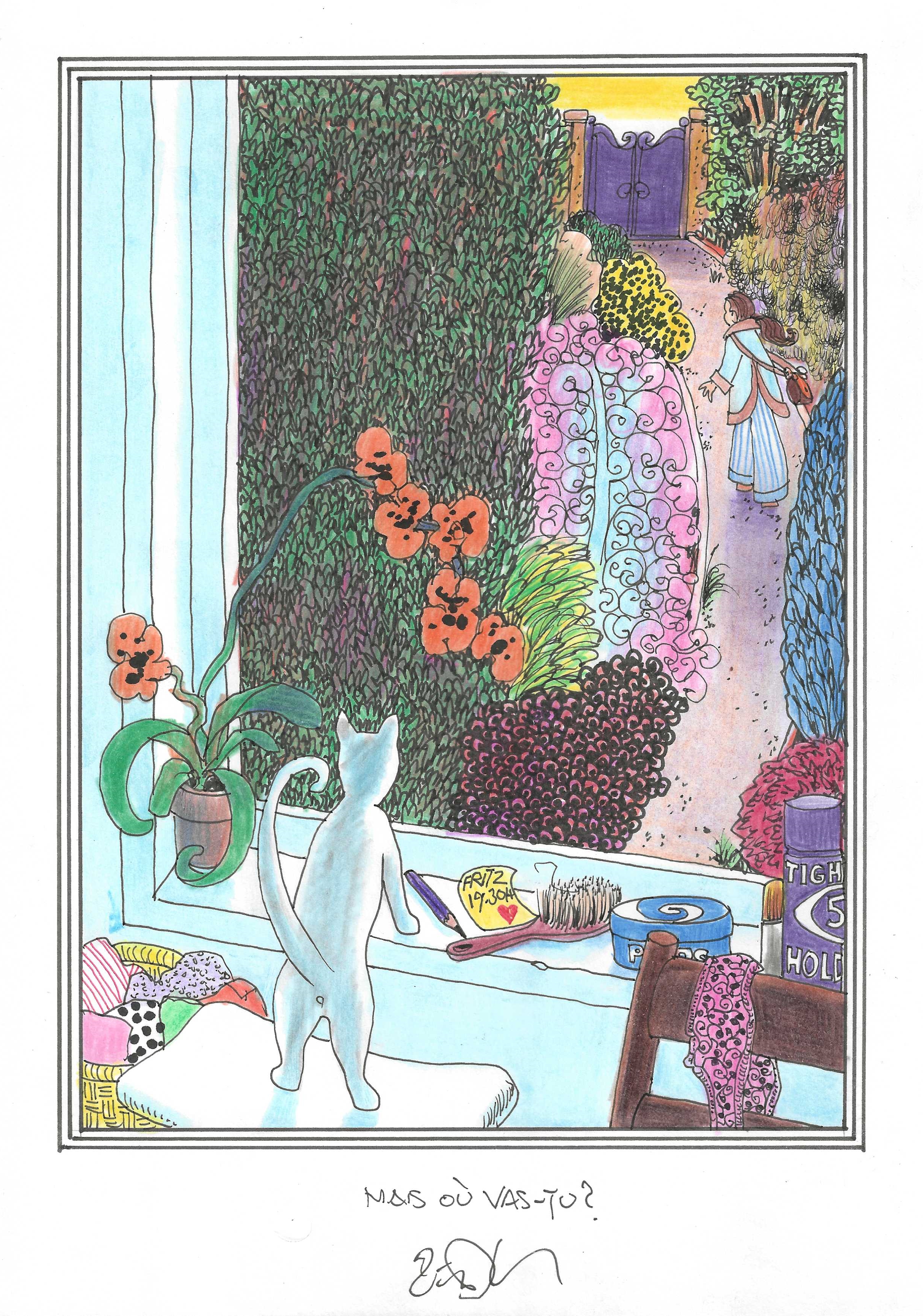 Drawing of the Day – 3326 – Dessin du jour « Where are you going ? – Mais où vas-tu ? » Ink & colour on Paper – 8 x 12″ (21 x 30 cm) – Encre & couleurs sur Papier
