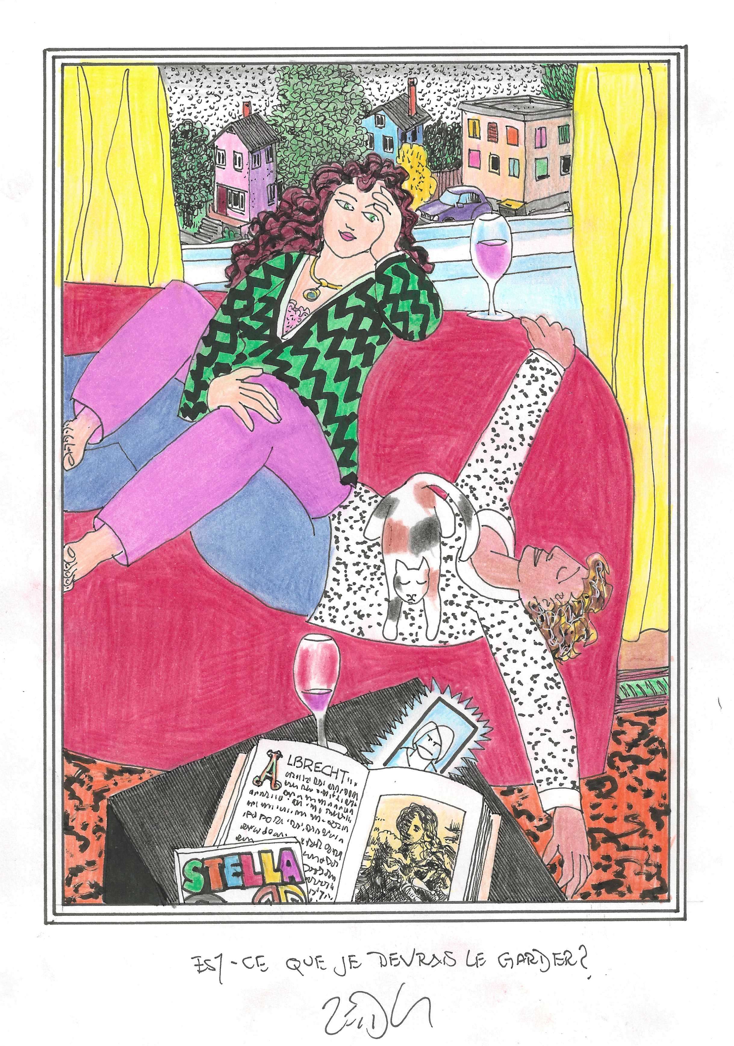 Drawing of the Day – 3332 – Dessin du jour « Should I keep him ? – Est-ce que je devrais le garder ? » Ink & colour on Paper – 8 x 12″ (21 x 30 cm) – Encre & couleurs sur Papier