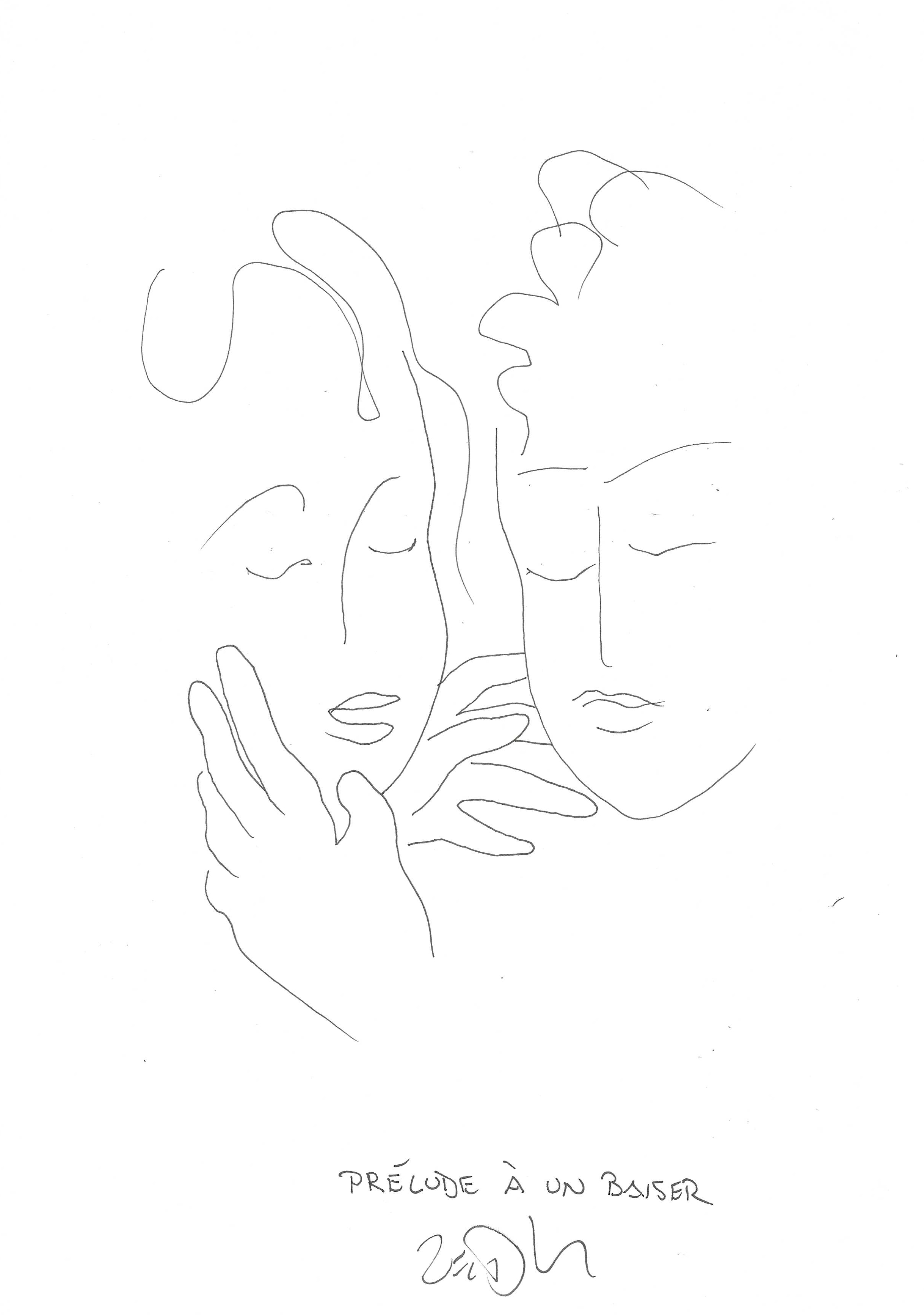 Drawing of the Day – 3334 – Dessin du jour « Prelude to a kiss – Prélude à un baiser » Ink on Paper – 8 x 12″ (21 x 30 cm) – Encre sur Papier