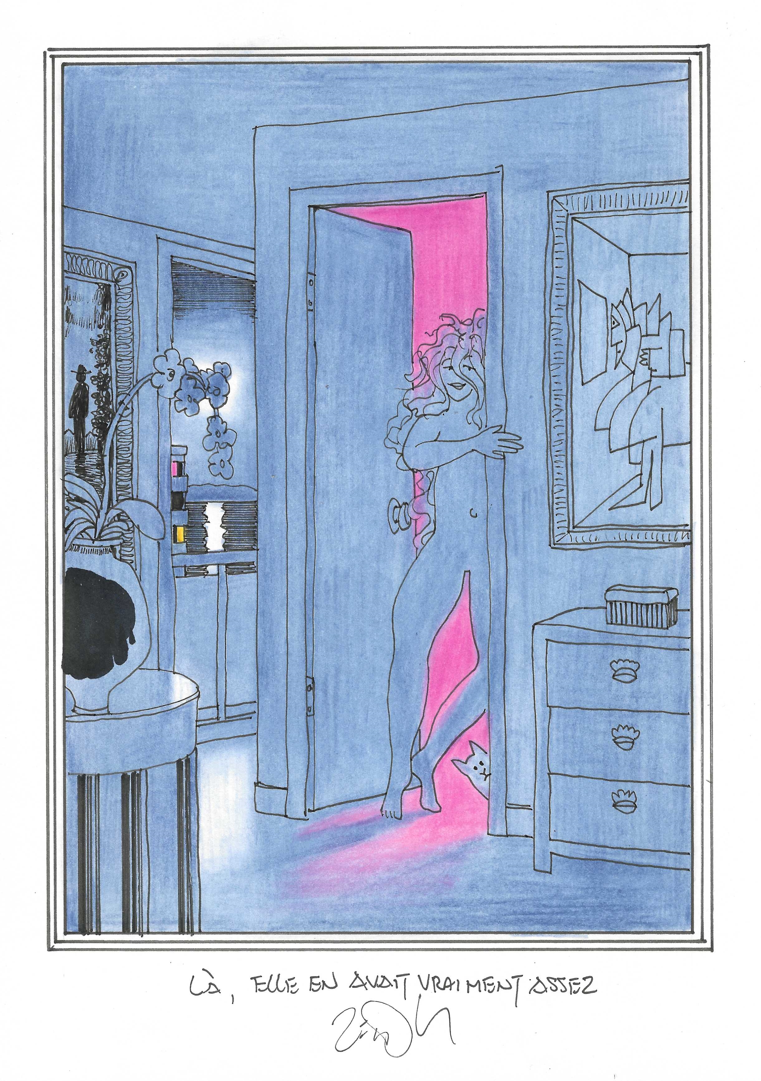 Drawing of the Day – 3246 – Dessin du jour « By that point she’d really had enough – Là, elle en avait vraiment assez » Ink & colour on Paper – 8 x 12″ (21 x 30 cm) – Encre & couleurs sur Papier