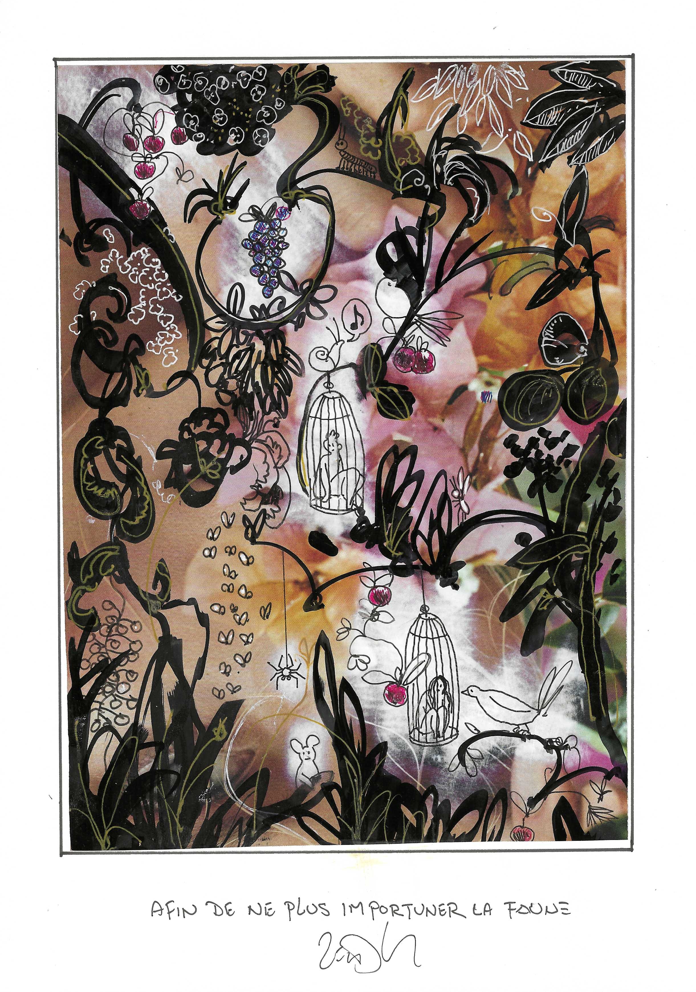 Drawing of the Day – 3249 – Dessin du jour « No more bothering the wildlife – Afin de ne plus importuner la faune » Mixed Media on Paper – 8 x 12″ (21 x 30 cm) – Technique mixte sur Papier