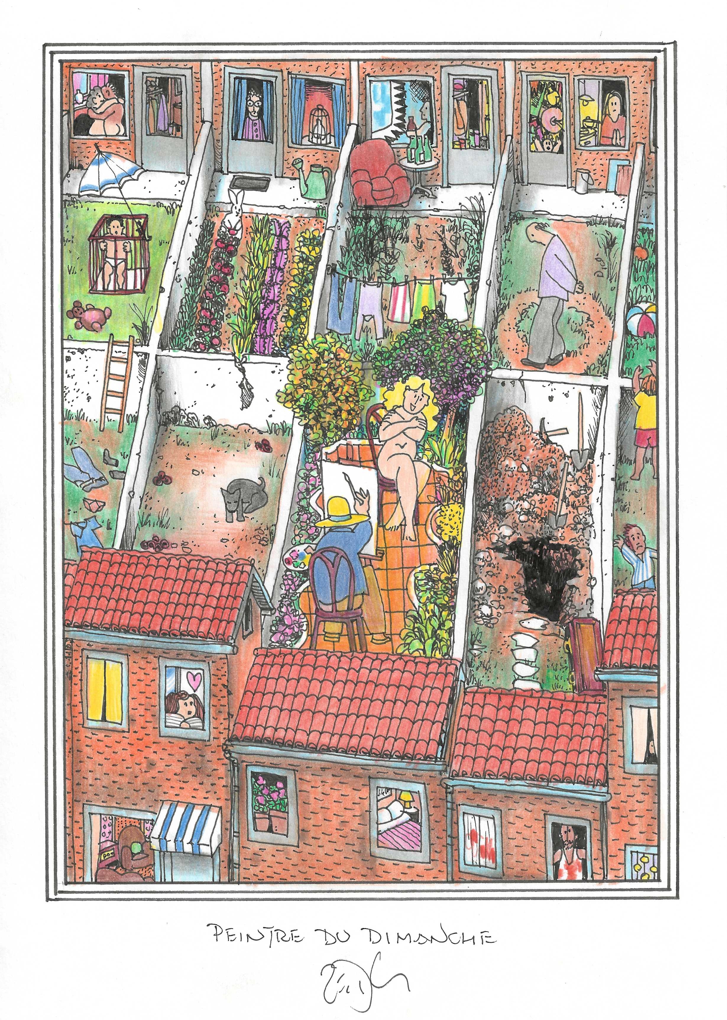 Drawing of the Day – 3151 – Dessin du jour « Sunday painter – Peintre du dimanche » Ink & colour on Paper – 8 x 12″ (21 x 30 cm) – Encre & couleurs sur Papier